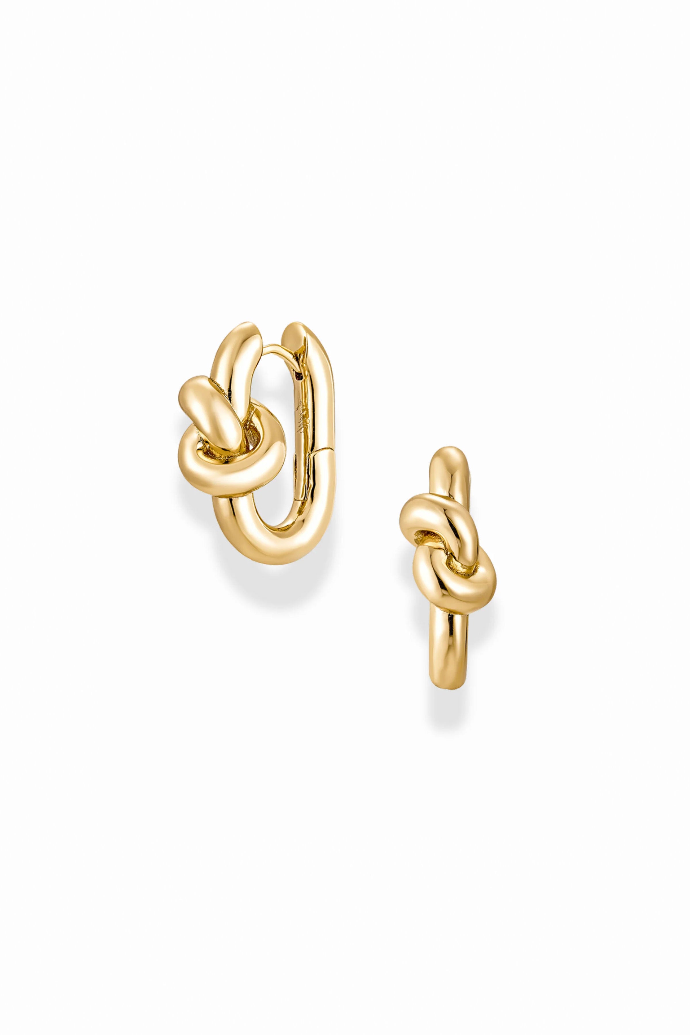 The Karina Knot Hoops add a modern twist to a classic favorite. Featuring a distinctive knot detail, these gold-plated hoops bring subtle texture and effortless style to your everyday rotation. Lightweight and polished, they’re the perfect way to update your look with a touch of unexpected charm.