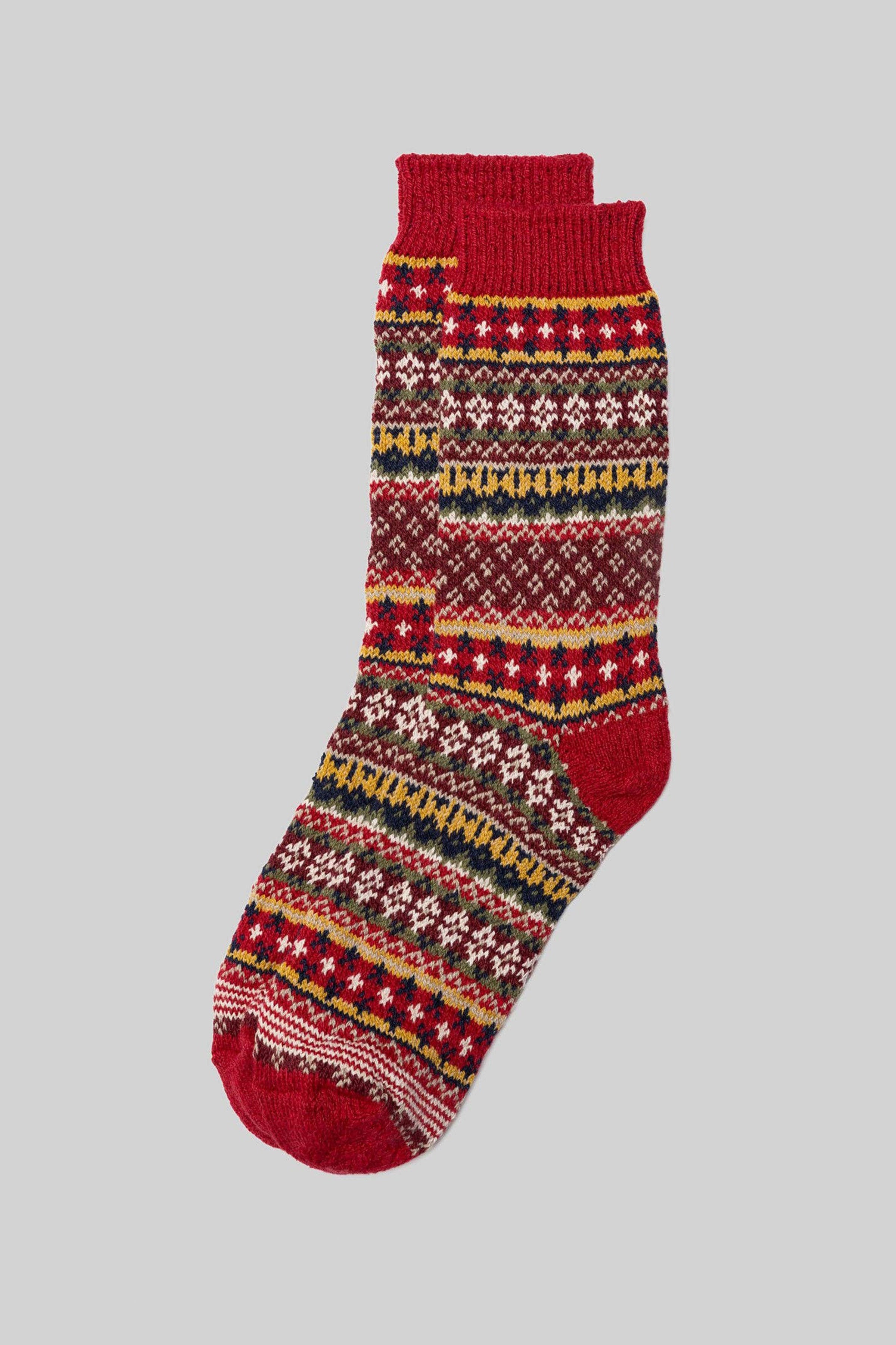 Men's Cotton Fair Isle Sock (Red)