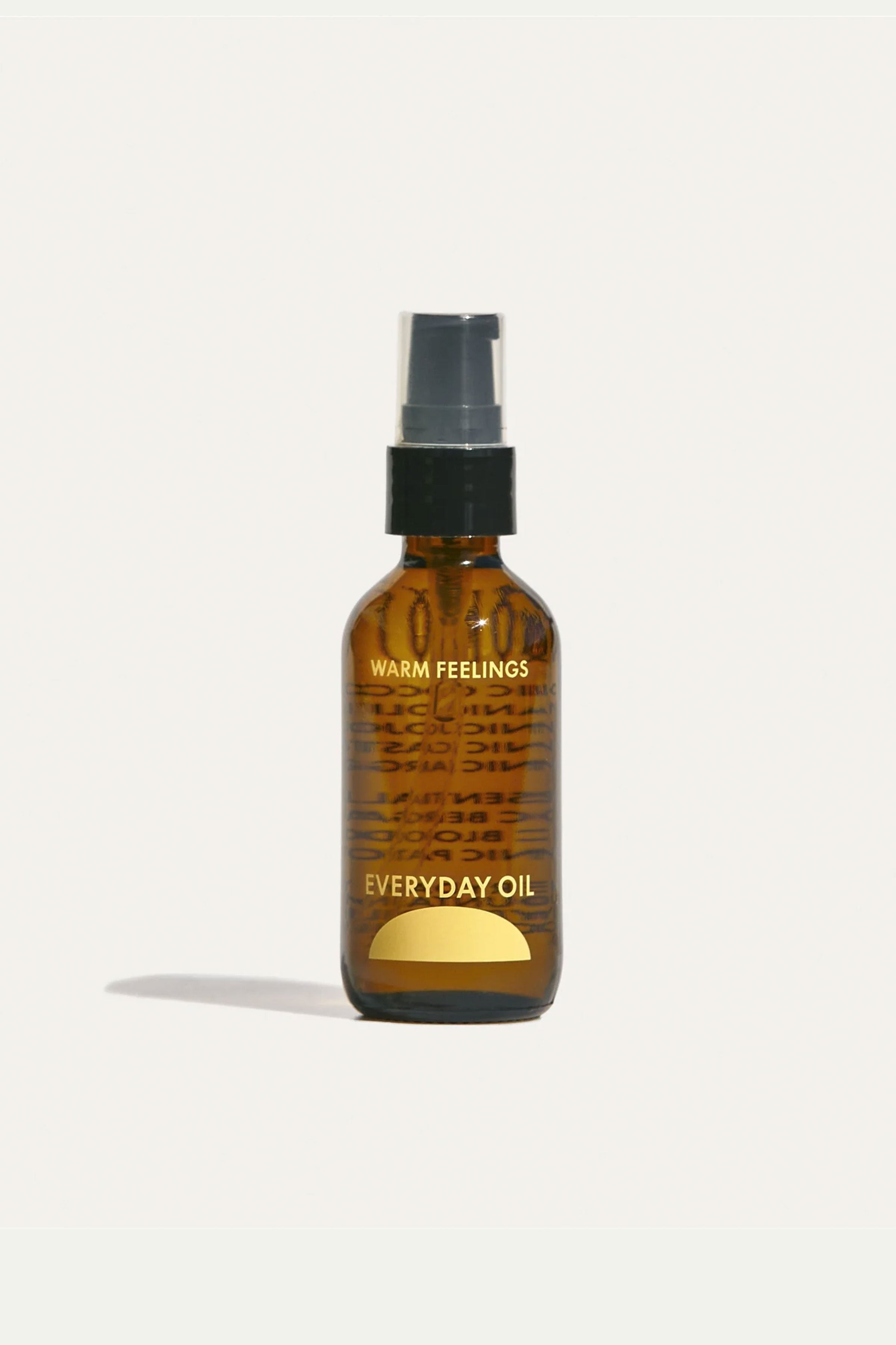 A new scent for everyone's favorite, Everyday Oil. This unisex whole body oil is a blend of organic cold-pressed plant oils and steam-distilled essential oils that are cleansing, hydrating + balancing. Can be used on the face, body + hair (aka everywhere). With a fragrant blend of Bergamot (FCF), Blood Orange and Patchouli this oil is calming, moisturizing and healing. Warm Feelings is a citrus-forward scent, that is lighter than the original Mainstay.