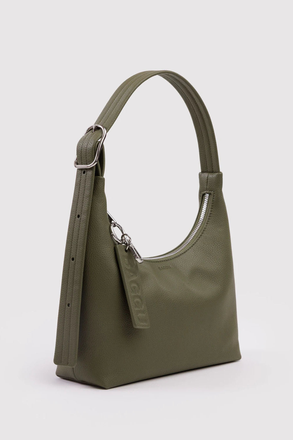 The most premium expression of BAGGU's mini shoulder bag. Crafted with simple, elegant lines and recycled leather that’s been fine-tuned for quality, style, and impact. The material upholds our durability and responsible sourcing standards alongside truly elevated details, like a signature grain, custom hardware, and recycled trims.