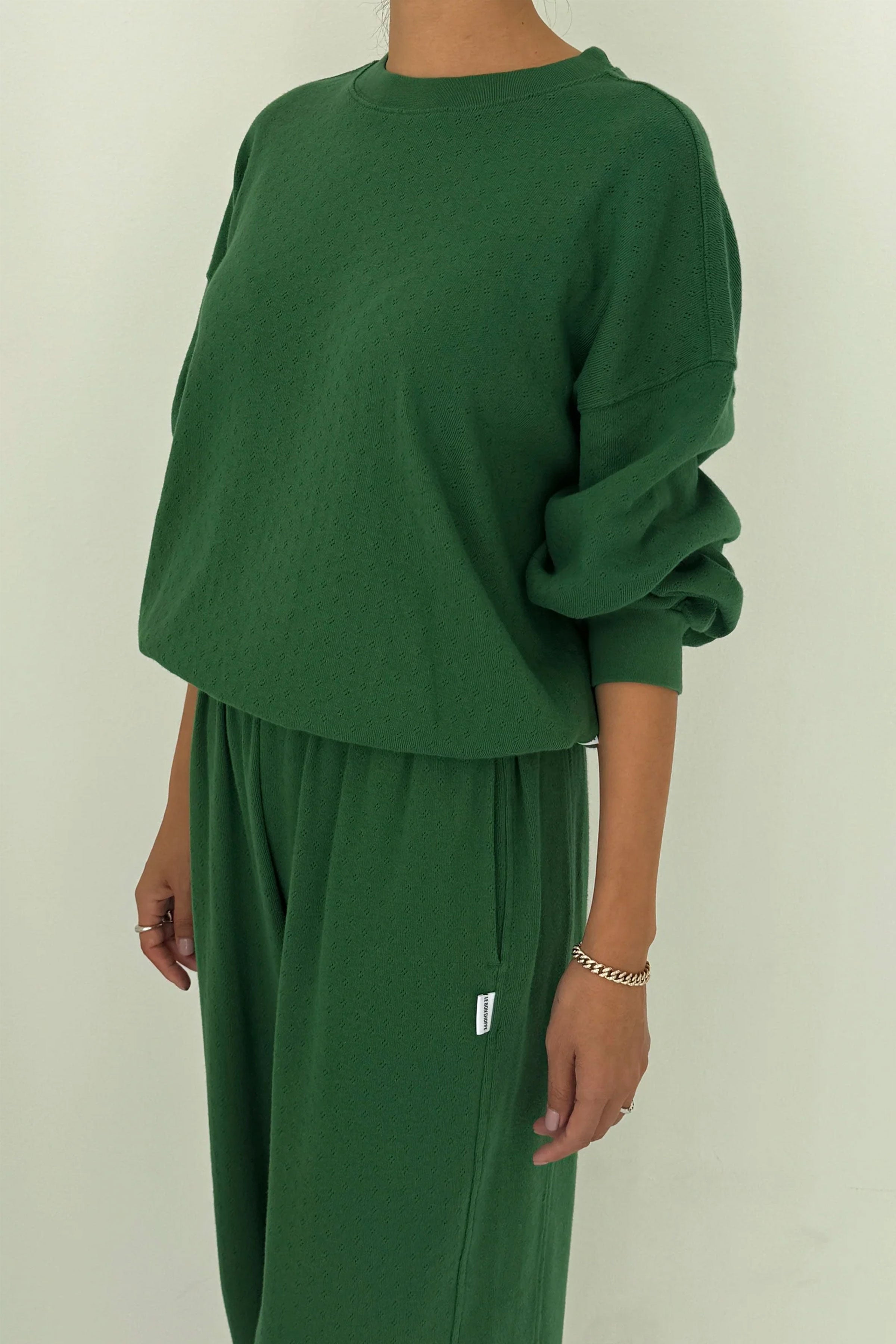 A lightweight layer for shifting seasons. The Pointelle Core Sweatshirt is made from ultra-soft jersey pointelle, offering just the right mix of breathability and warmth. With its relaxed drape and voluminous sleeves, it’s a refined take on cozy.