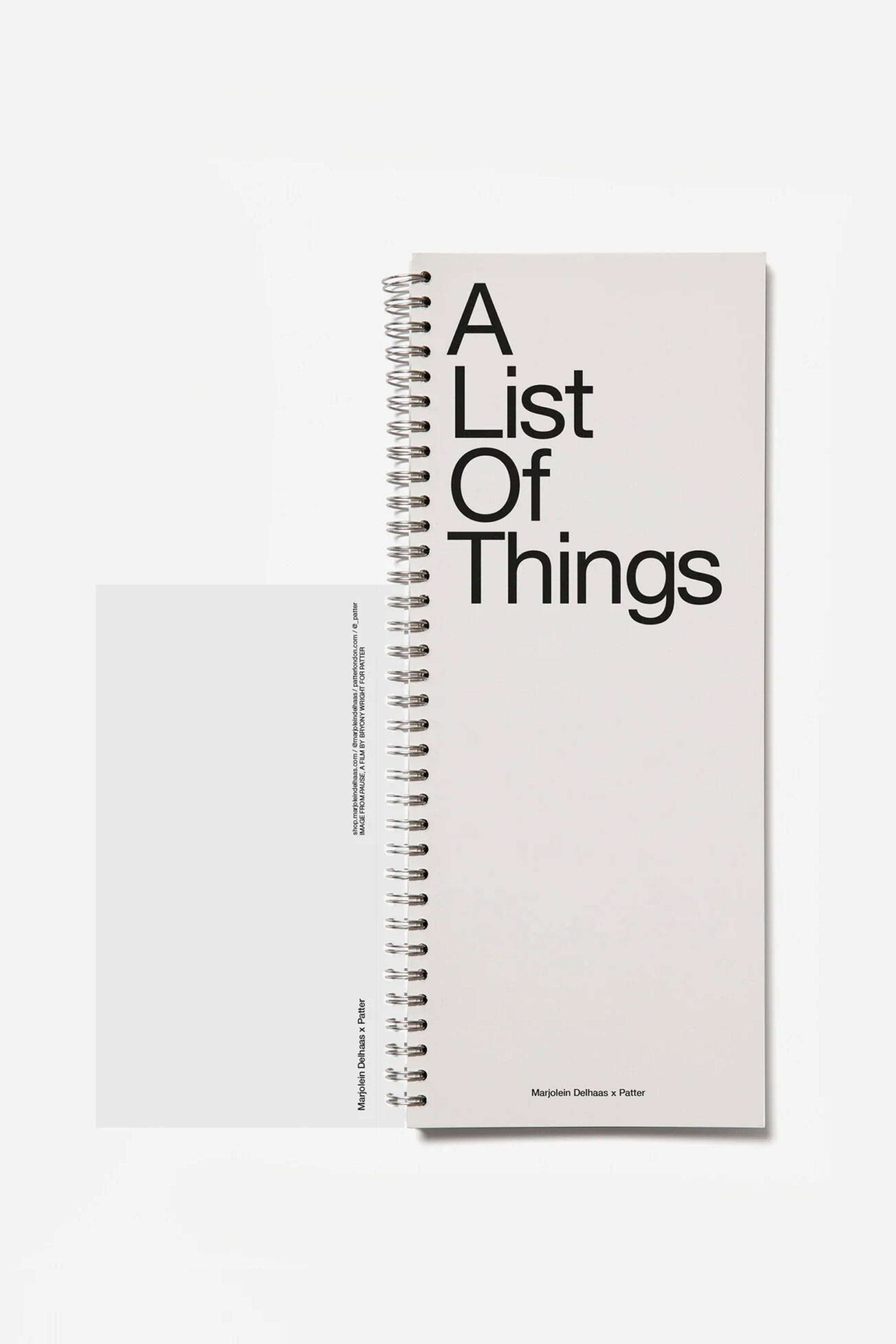A List Of Things is a notebook dedicated to listmaking conceived by Marjolein Delhaas and Patter. Designed with consideration, A List of Things invites customisation on each page. Devotees have shared their individualised systems, that bring a daily clarity, they now can’t live without.