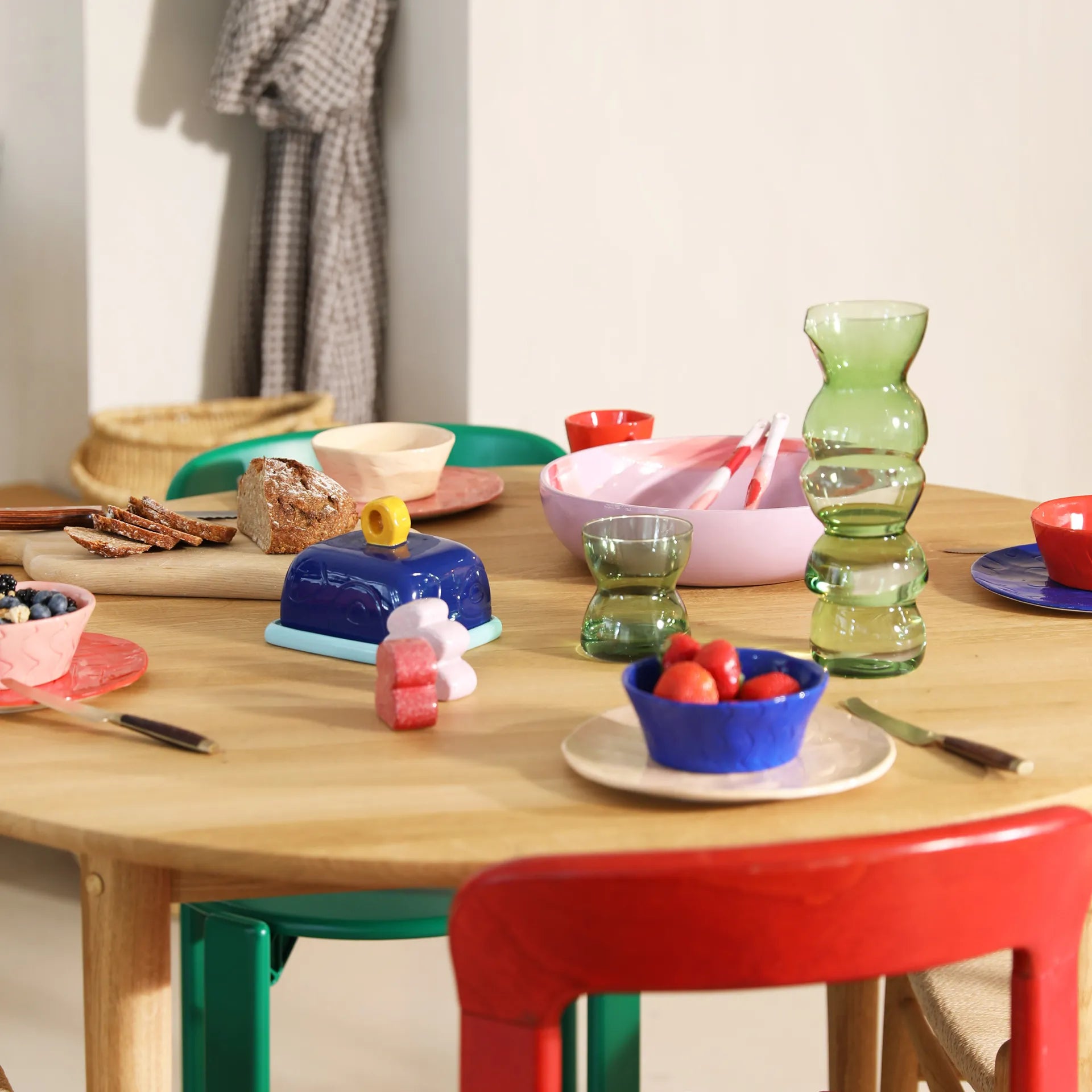 Dress up your dinner table with this chunky butter dish! Contrasting colors and abstract shapes. The butter dish will keep your fresh butter cool, while adding that artistic feel to your table.