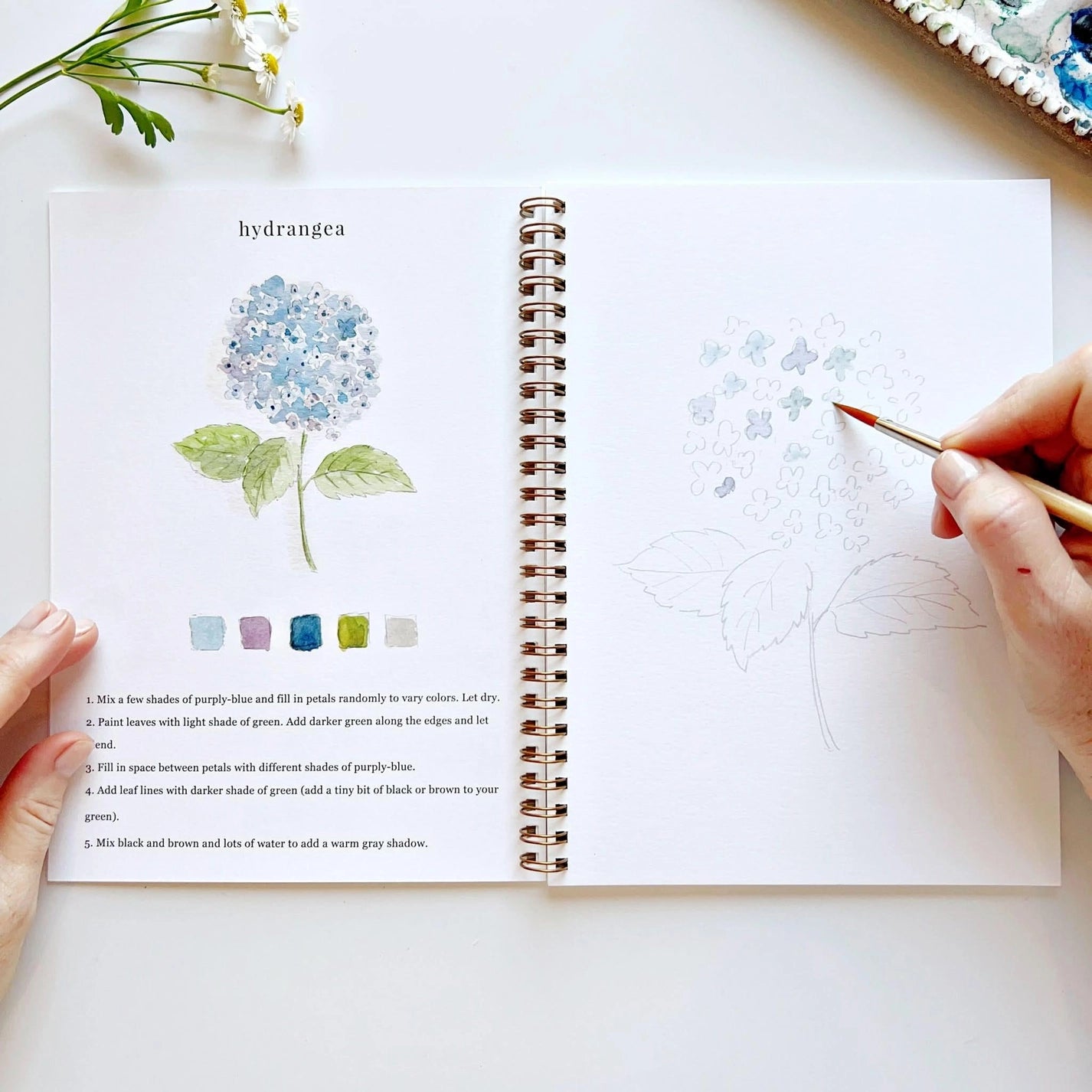The idea for the Watercolor Workbooks started with kids in mind. Simple outlined sketches they could paint with watercolors just like with crayons in a coloring book.