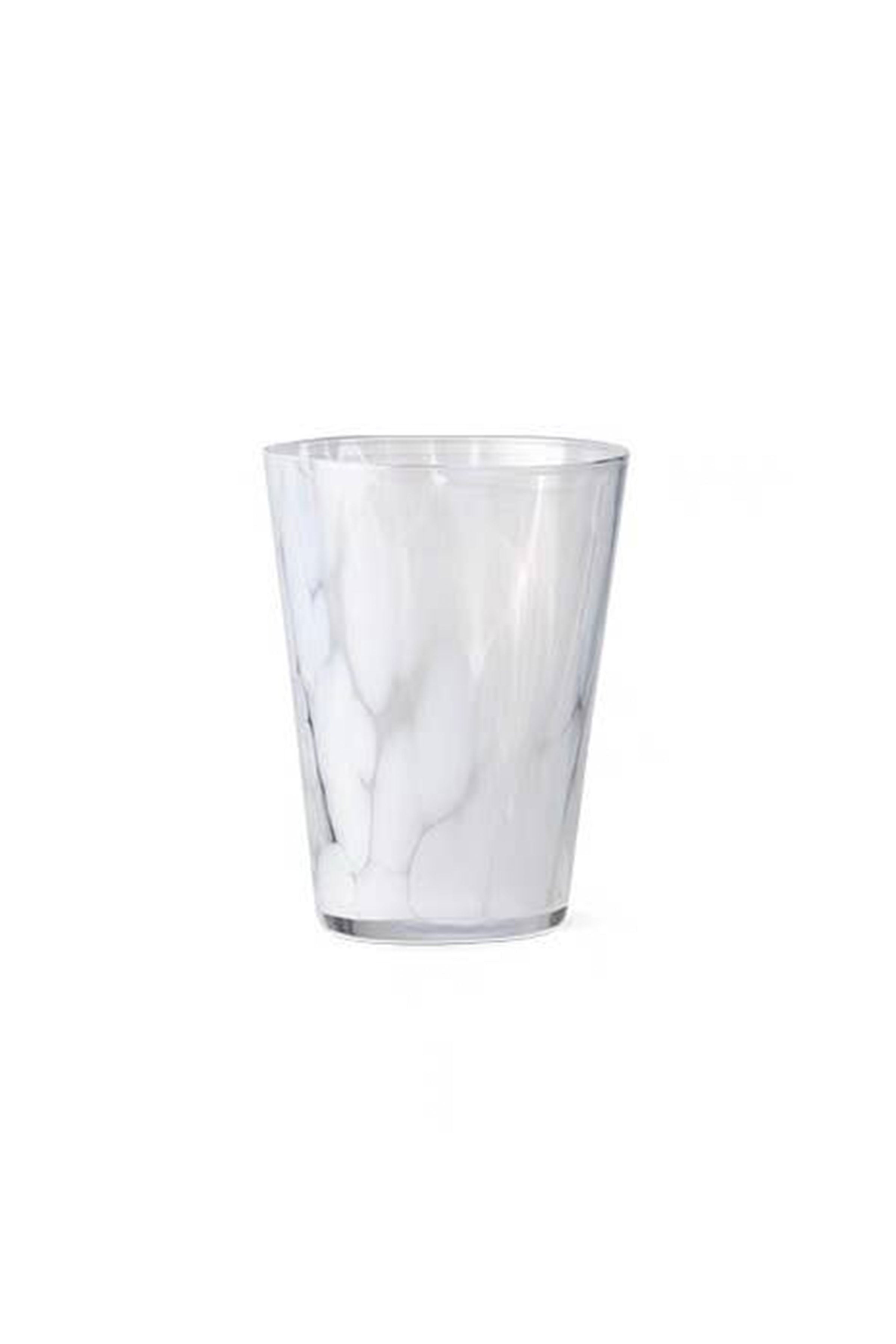Mouth blown by skilled artisans, this colored glass tumbler has an asymmetrical, organic shape that sits comfortably in your hand, and the irregular pattern of monochrome spots is unique to each individual glass and will add a playful & refreshing touch to your table.
