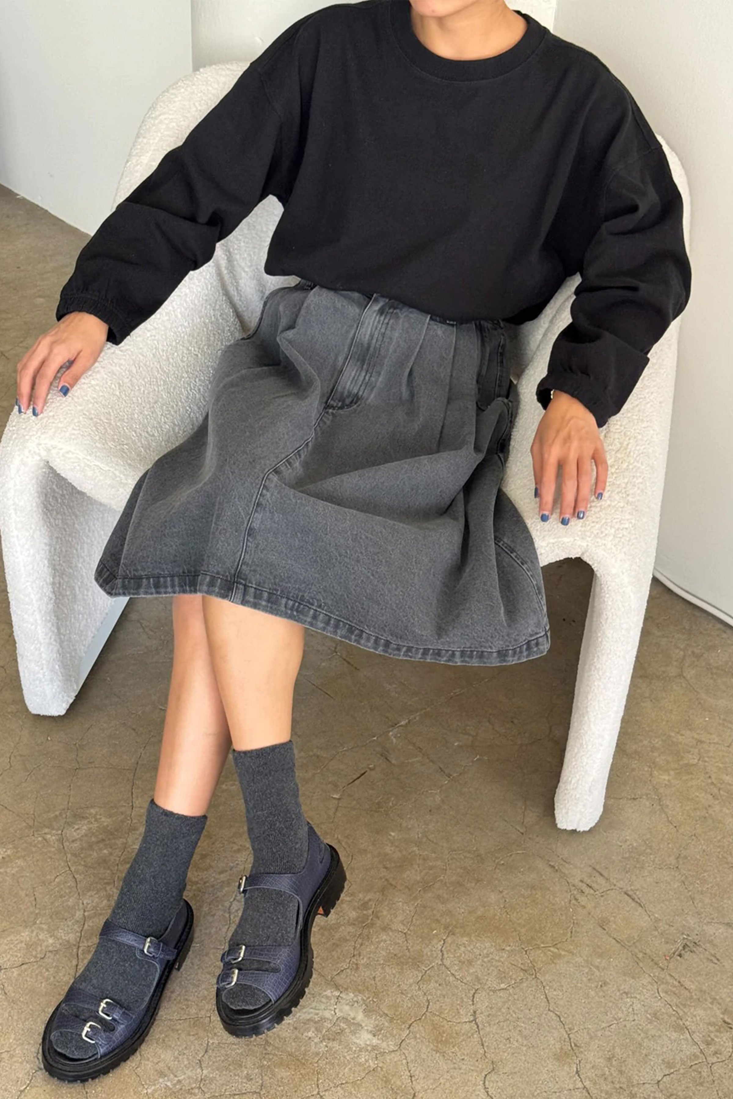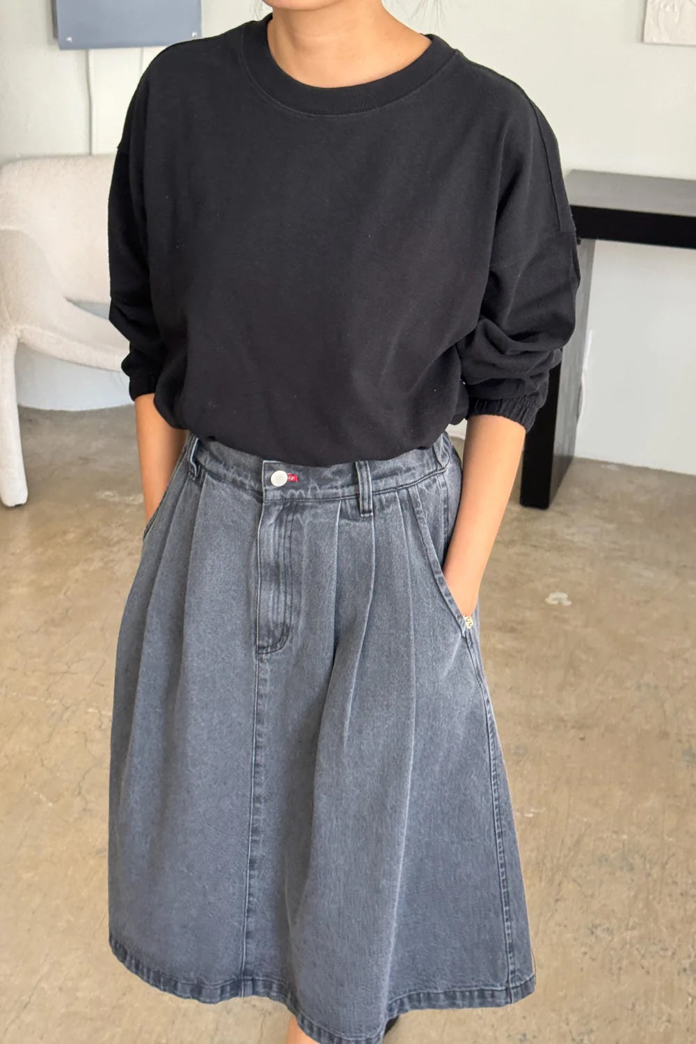 A relaxed t-shirt made from a heavyweight cotton with a super raw textured  - yet still soft and airy. Elastic ruched sleeve opening creates a slight balloon sleeve effect and adds a slight feminine detail. Wear the sleeve full length or scrunch it up for a more relaxed, slouchy feel. Pairs perfectly with the Flared Basketball Shorts.