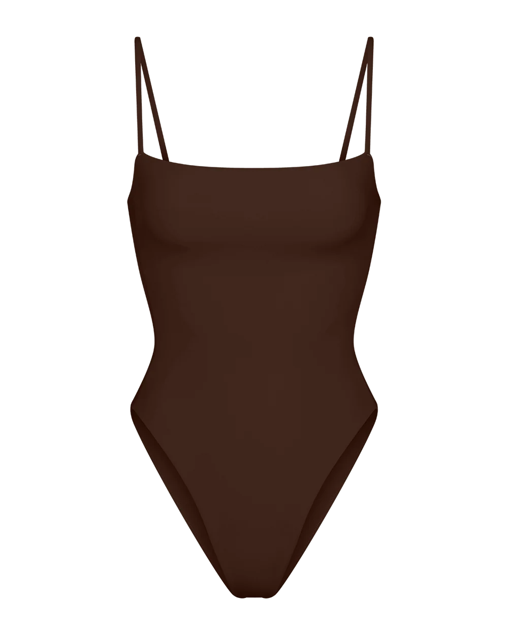- Skinny straps, straight neckline