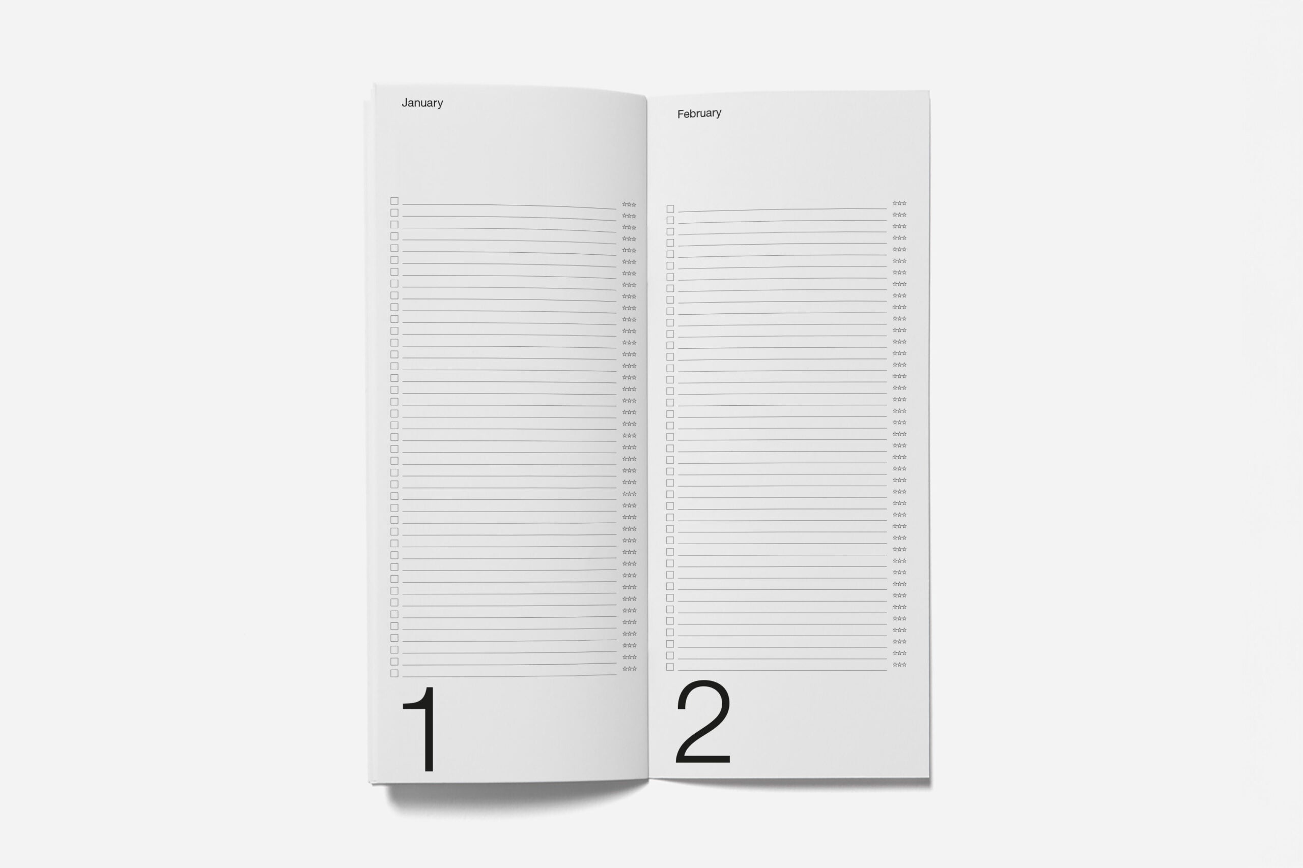 The Year Plan features 56 pages divided into five sections: Plans Lists, Month Lists, Month Plan Grids, Achieved Lists, and Notes. Designed for personal or professional planning, it adapts to your pace — whether tracking one month at a time or the full year. With its narrow format, flat staple binding, and Cradle to Cradle Certified® paper, this slim structured year planner supports sustainable, intentional use.