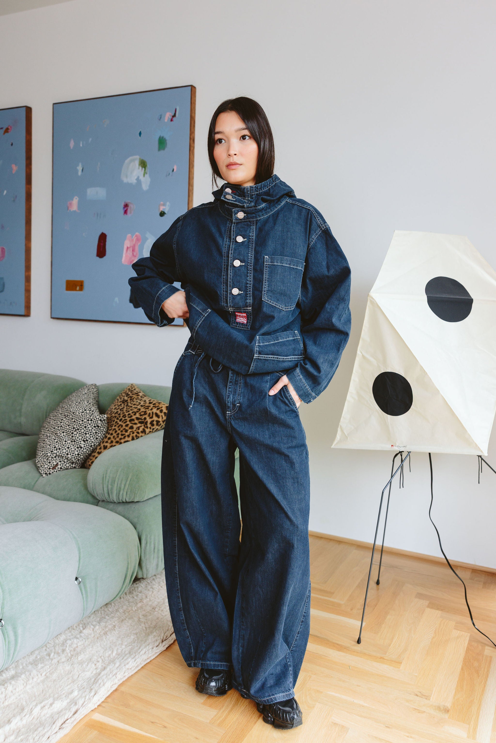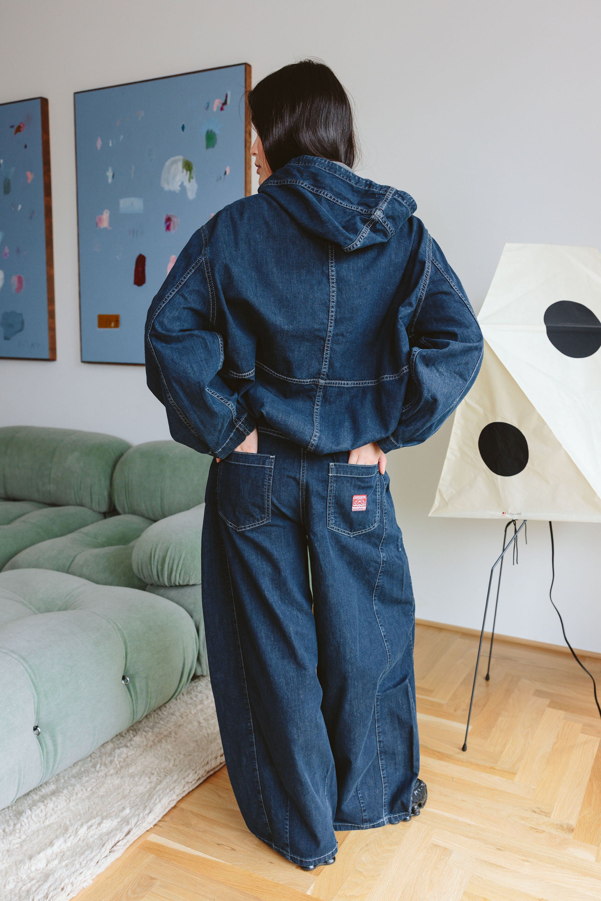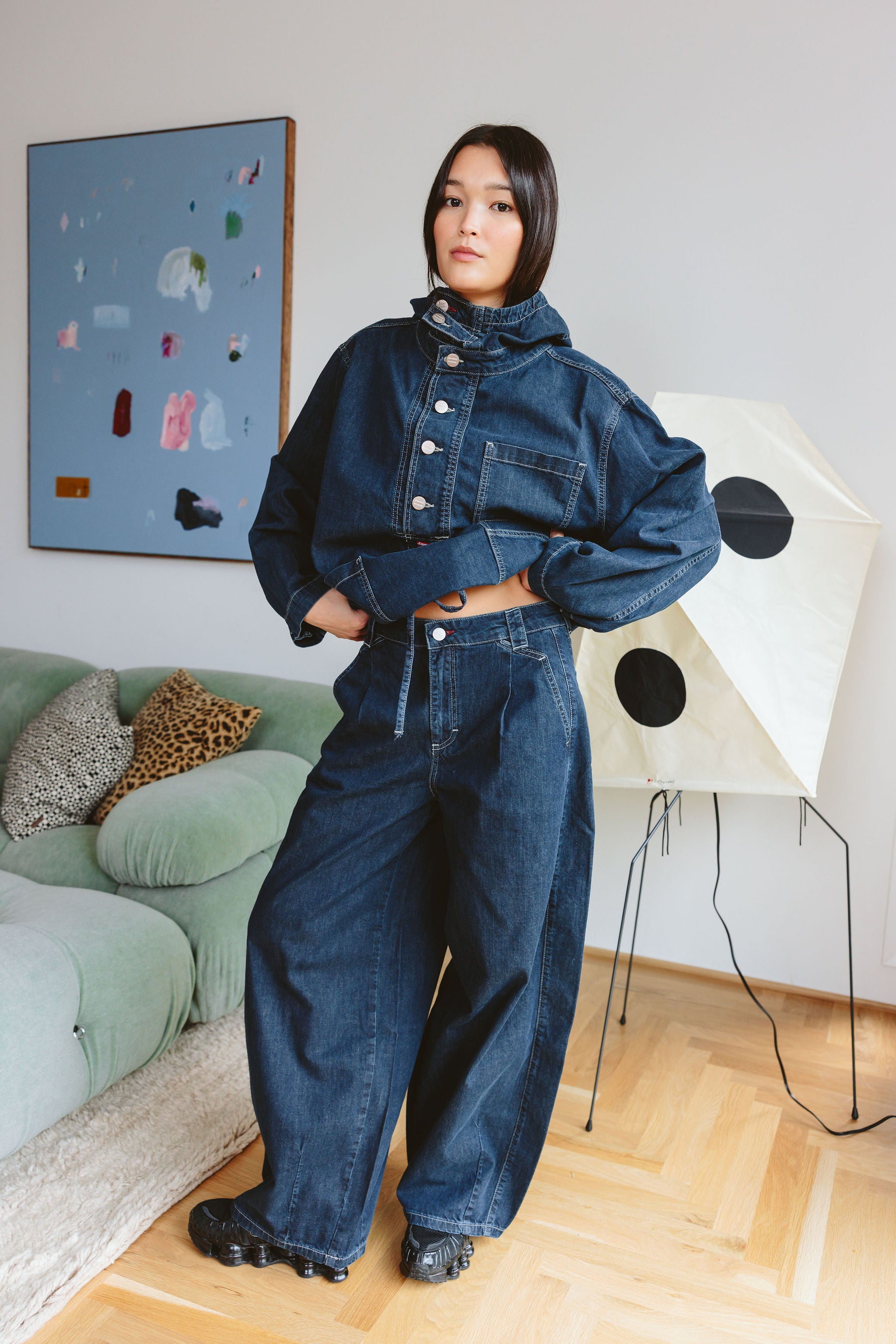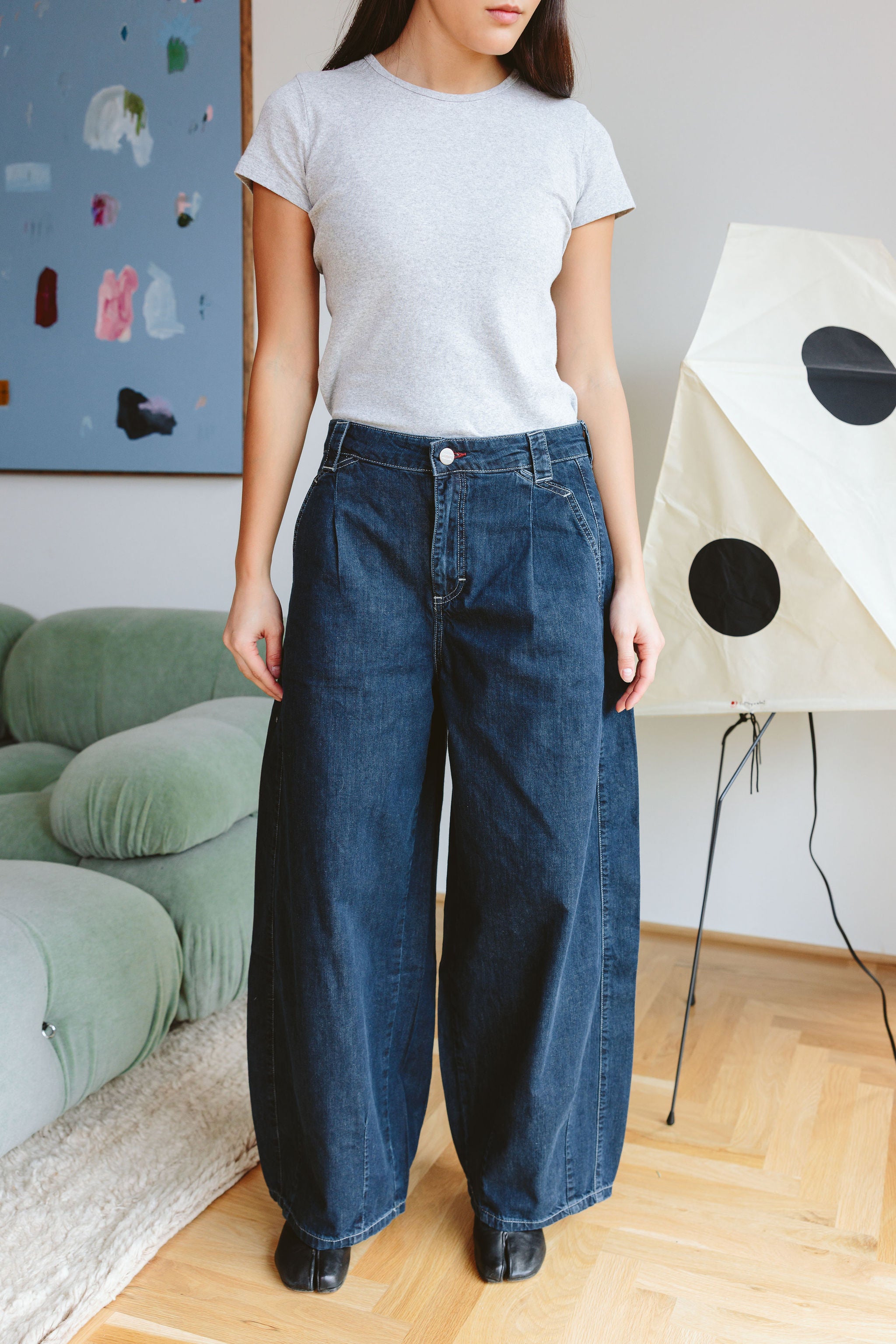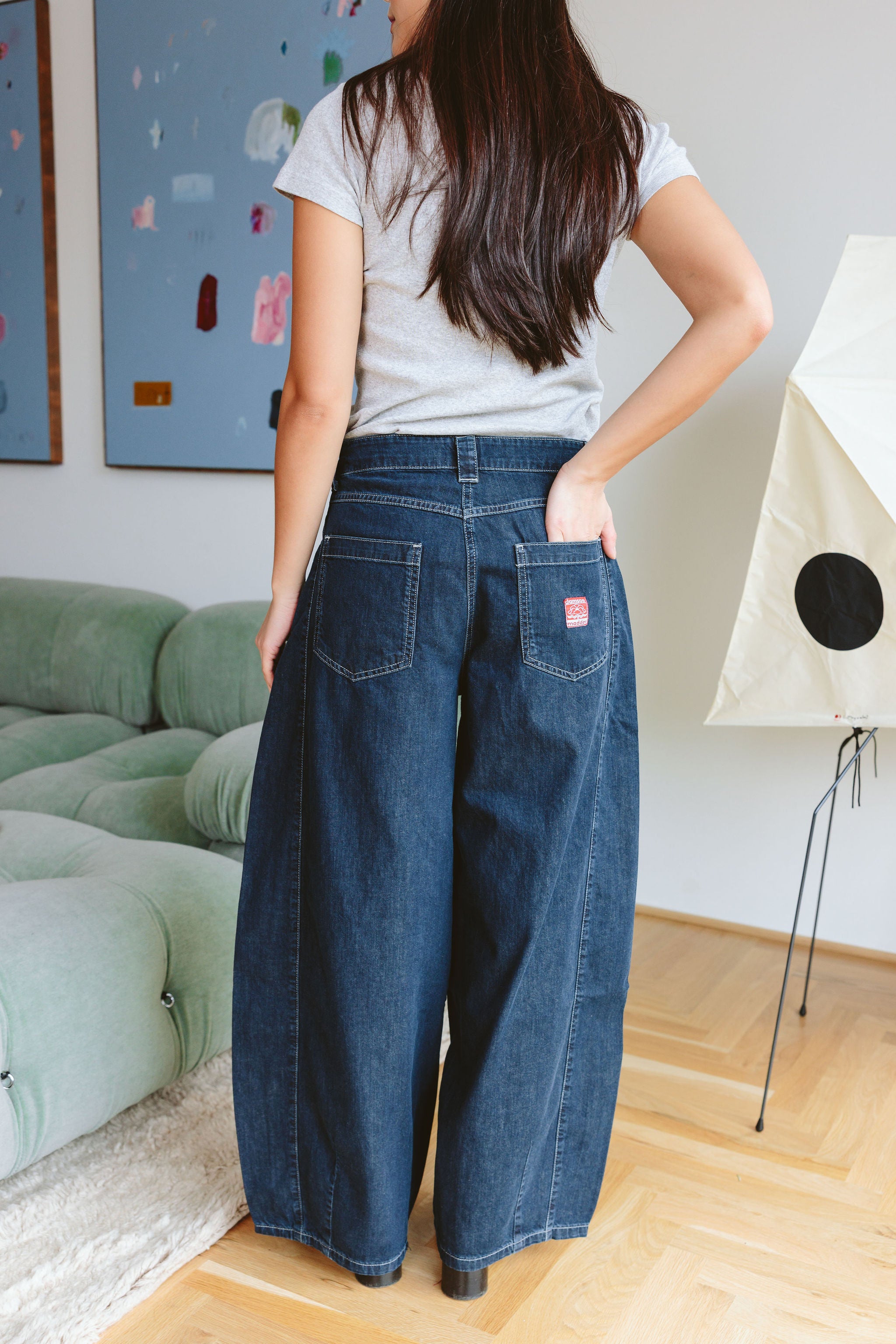 - Contrast stitch detail, Soft fluid denim, Barrel leg shaping