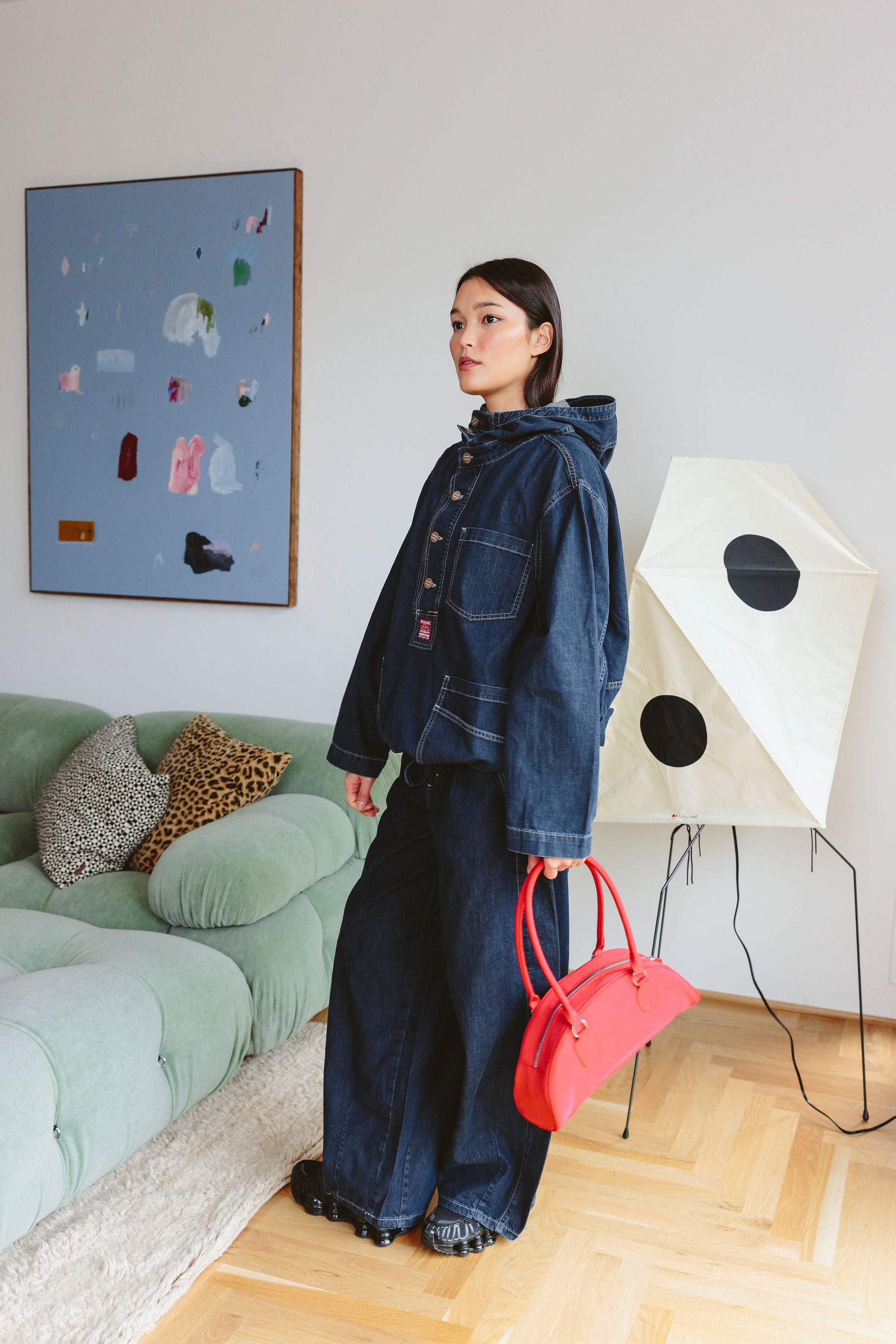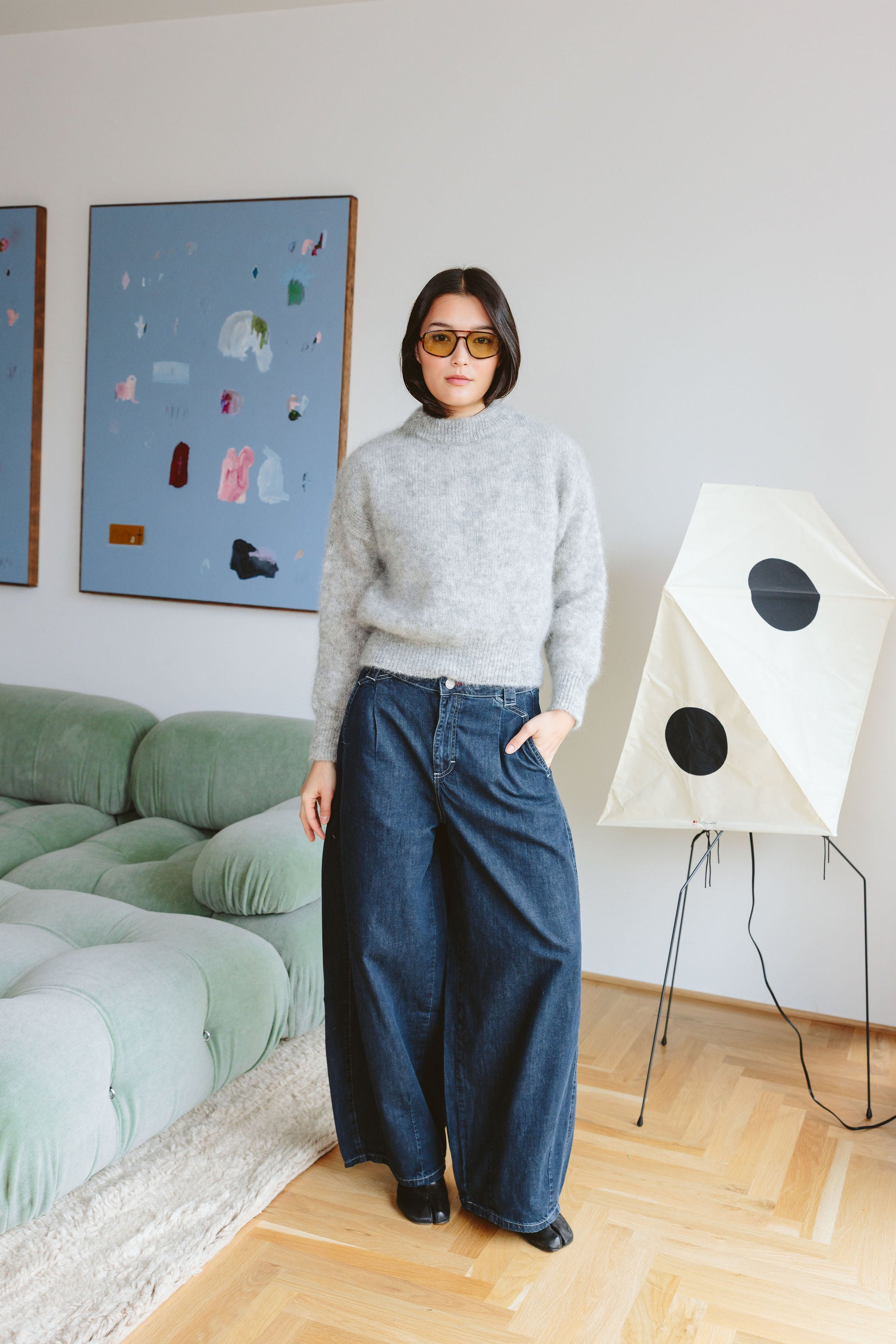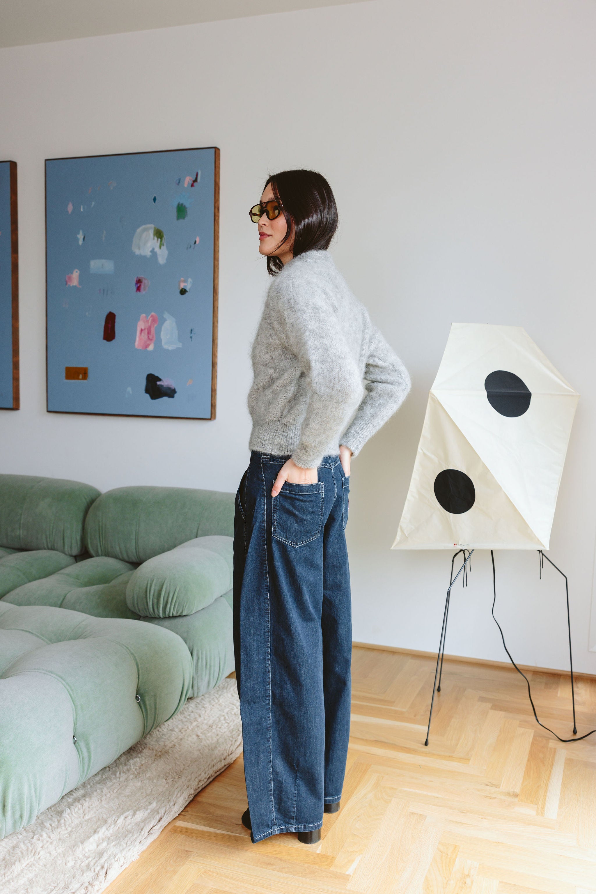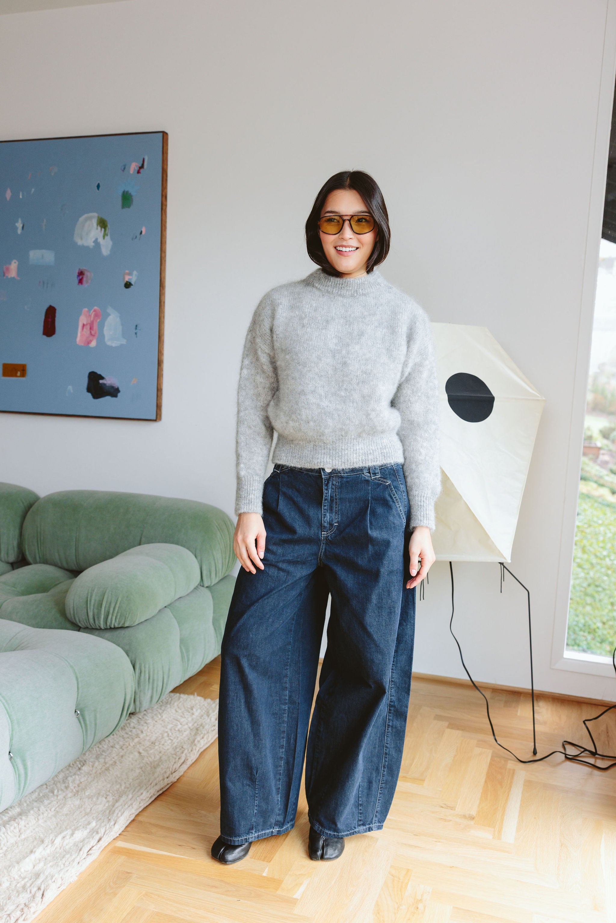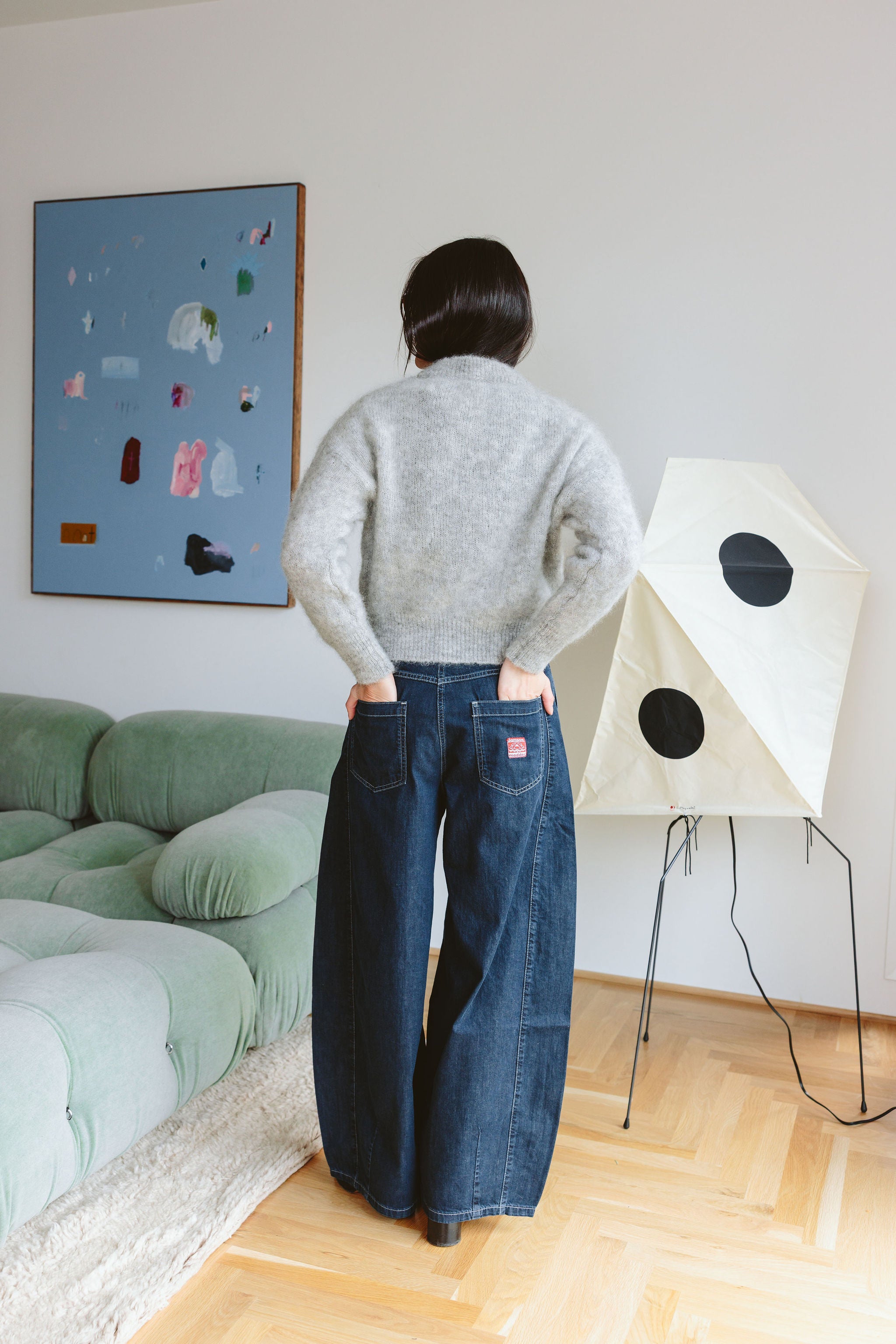 - Contrast stitch detail, Soft fluid denim, Barrel leg shaping