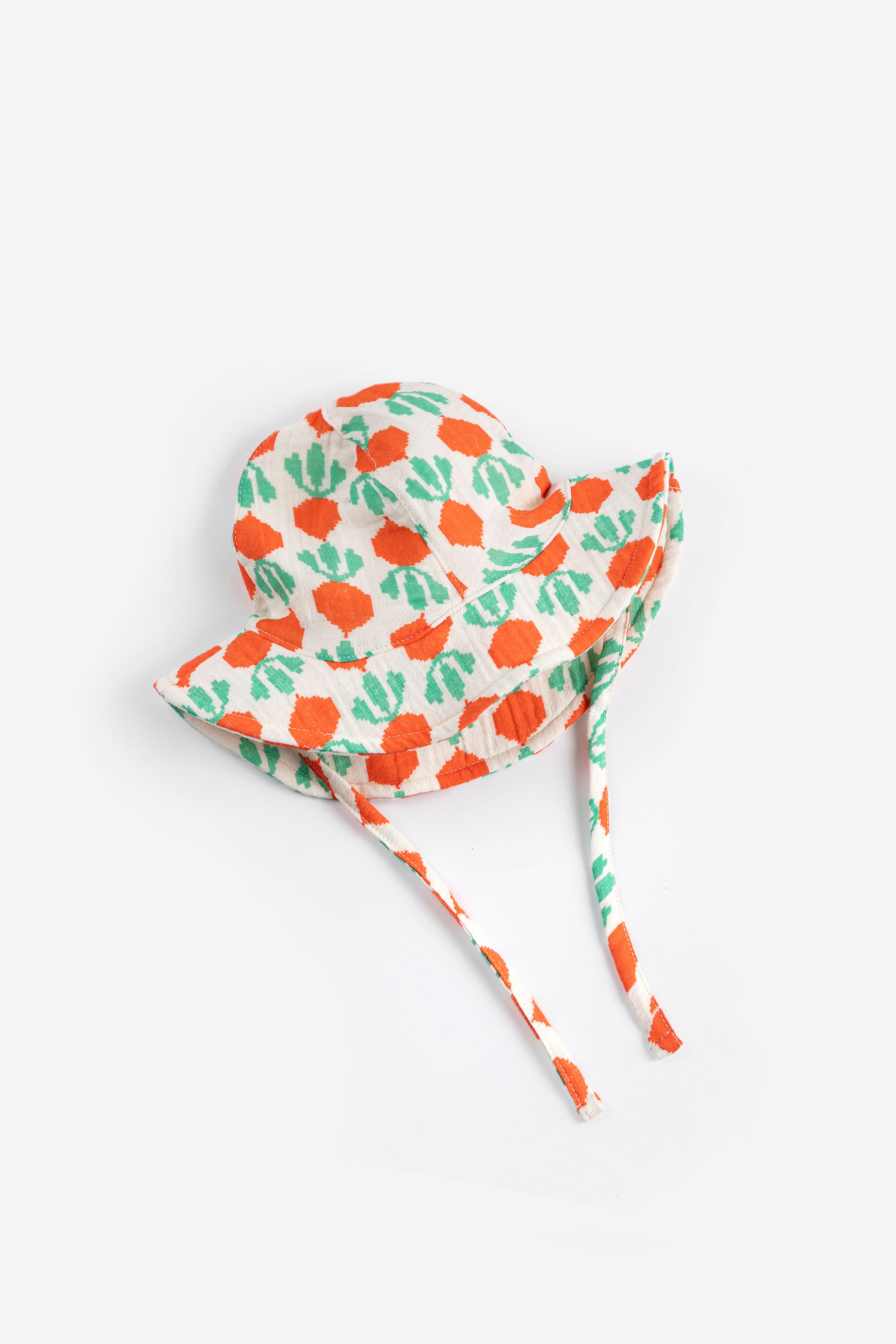 This cool radish hat is made from 100% cotton. A stylish choice for sunny days.