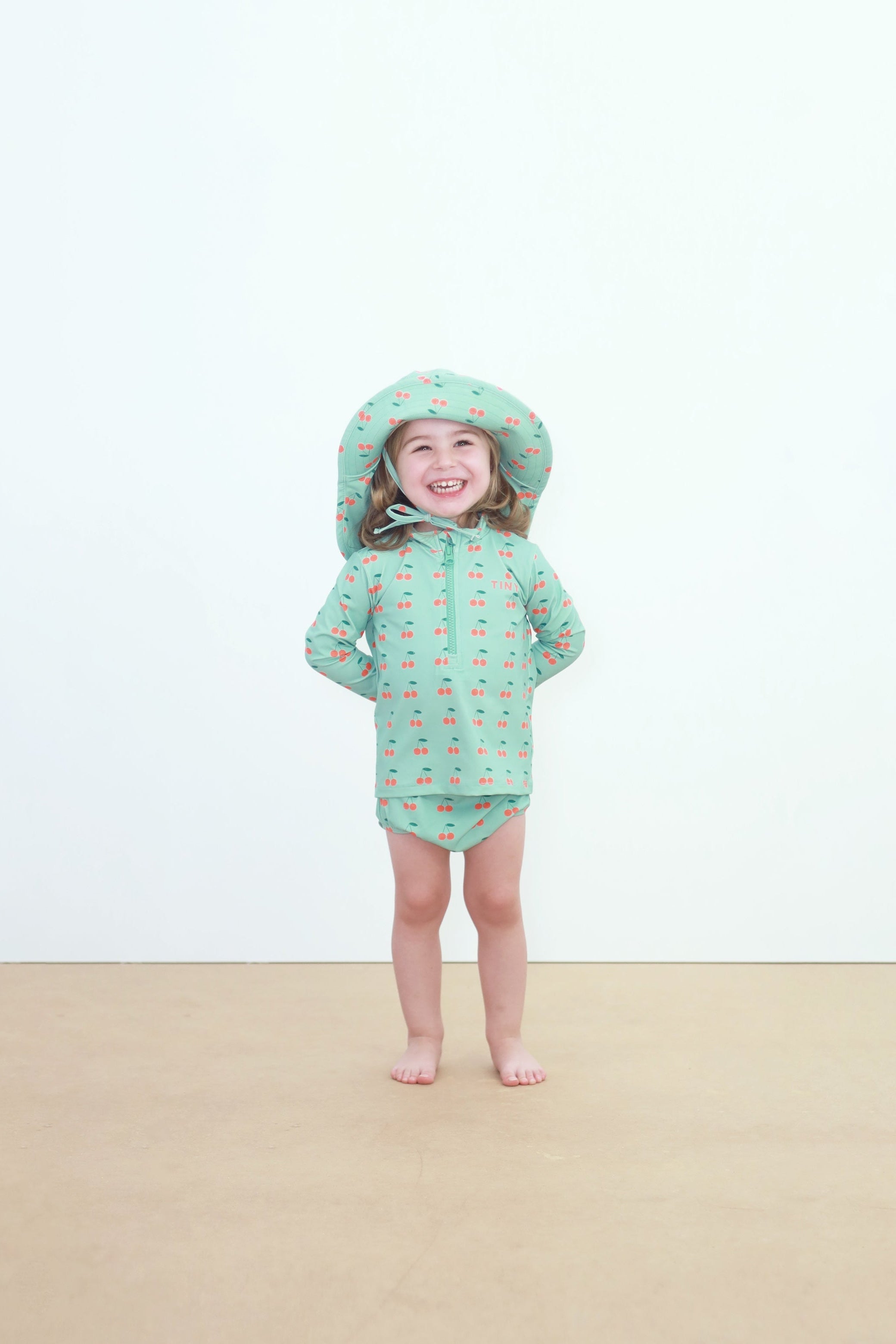 Stay stylish under the sun. This bucket hat featuring the Cherries print is crafted from a stretchy, quick-drying fabric, perfect for beach days. The TINY logo is printed on the front, adding a distinctive and summery touch. Lightweight, comfortable, and full of personality, it’s the perfect accessory for sunny adventures.
