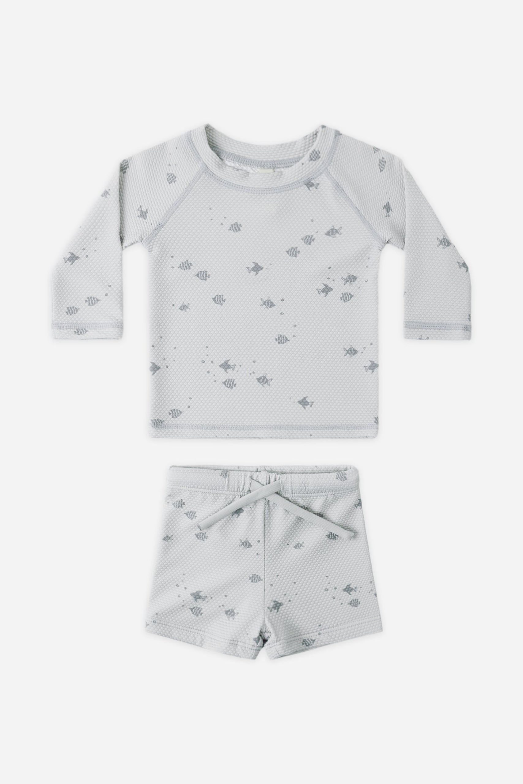 This two-piece rashguard set will keep your little one protected from the sun in style. Featuring a long sleeve rashguard top and coordinating boy short.