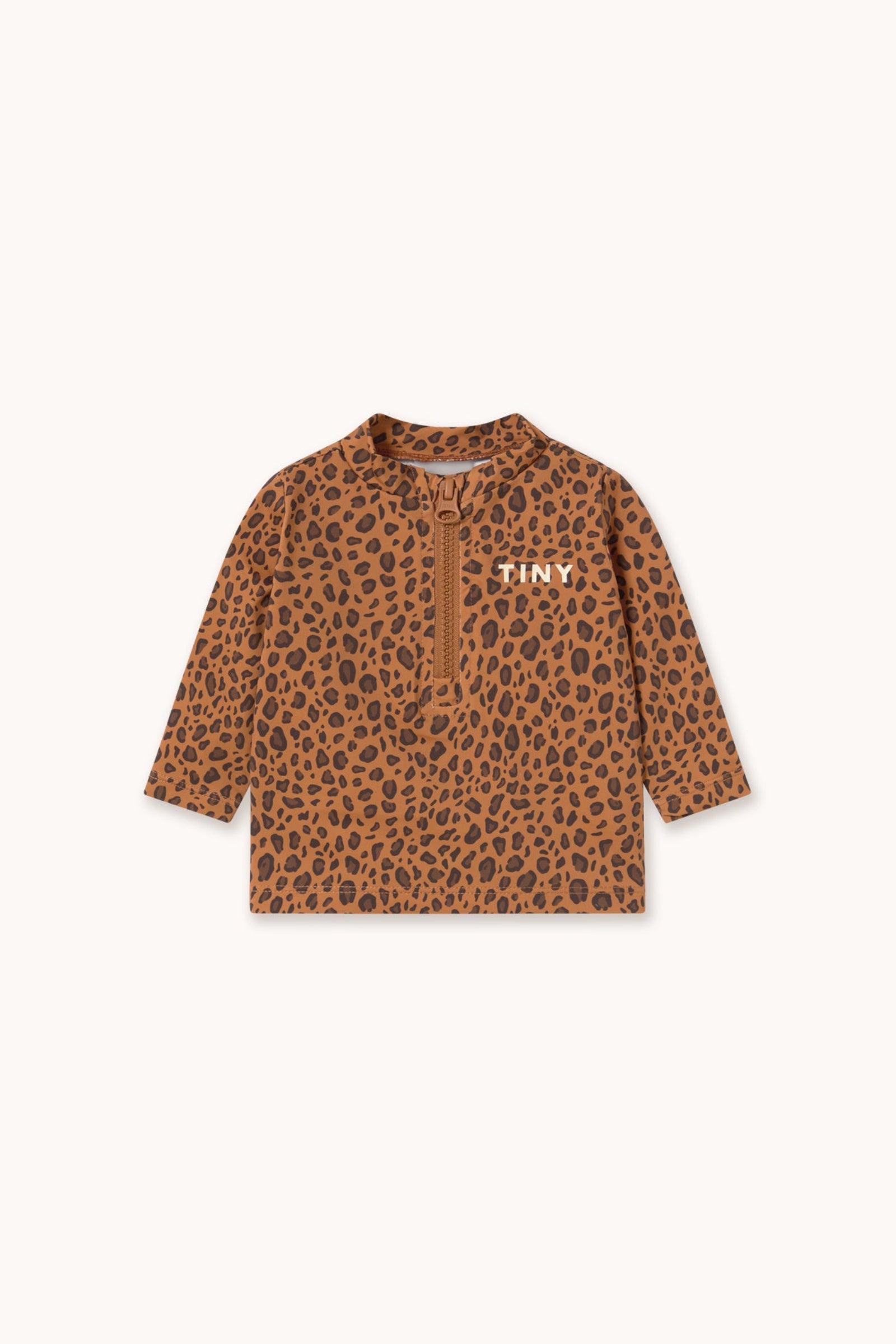 This baby long-sleeve swim shirt with a mini Animal Print combines protection, comfort, and style. Made from a stretchy, quick-drying fabric, it allows full freedom of movement in the water. The front zipper makes dressing and changing easy, making it a practical and cute piece for sunny days and water fun.