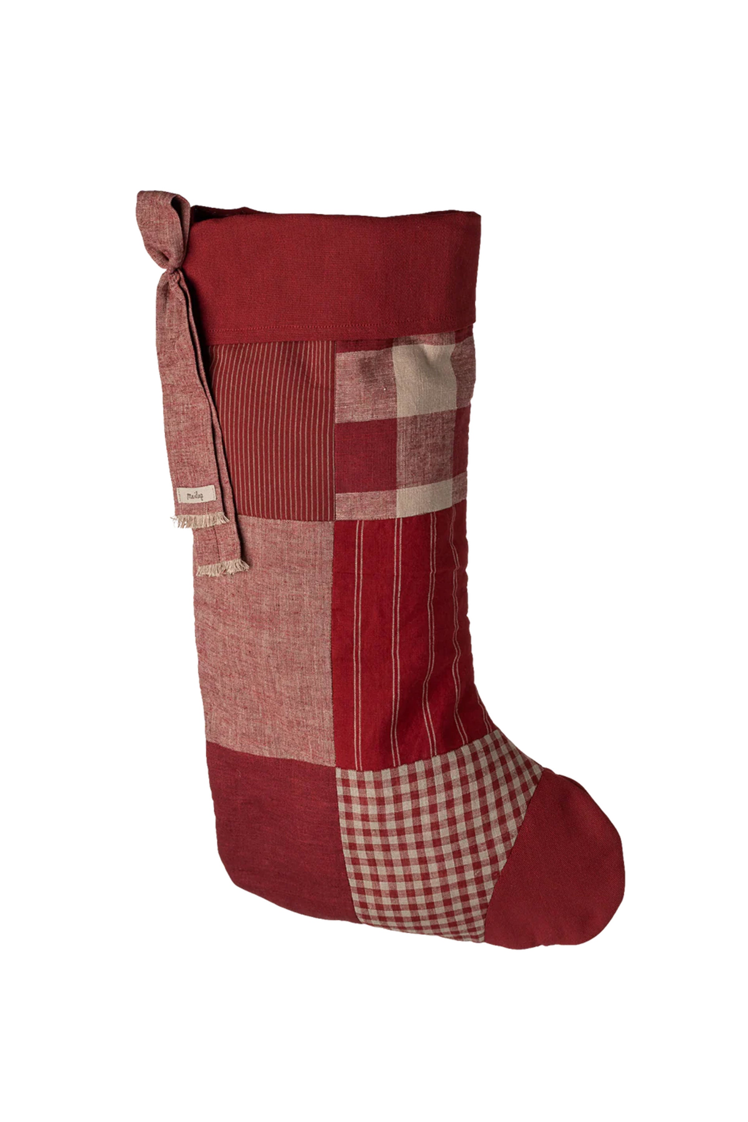 Find the perfect spot in your home to hang this beautiful Christmas stocking made in a beautiful mosaic of different fabrics in the colors of Christmas. Let Santa visit during December with small surprises to make a magical Christmas atmosphere.