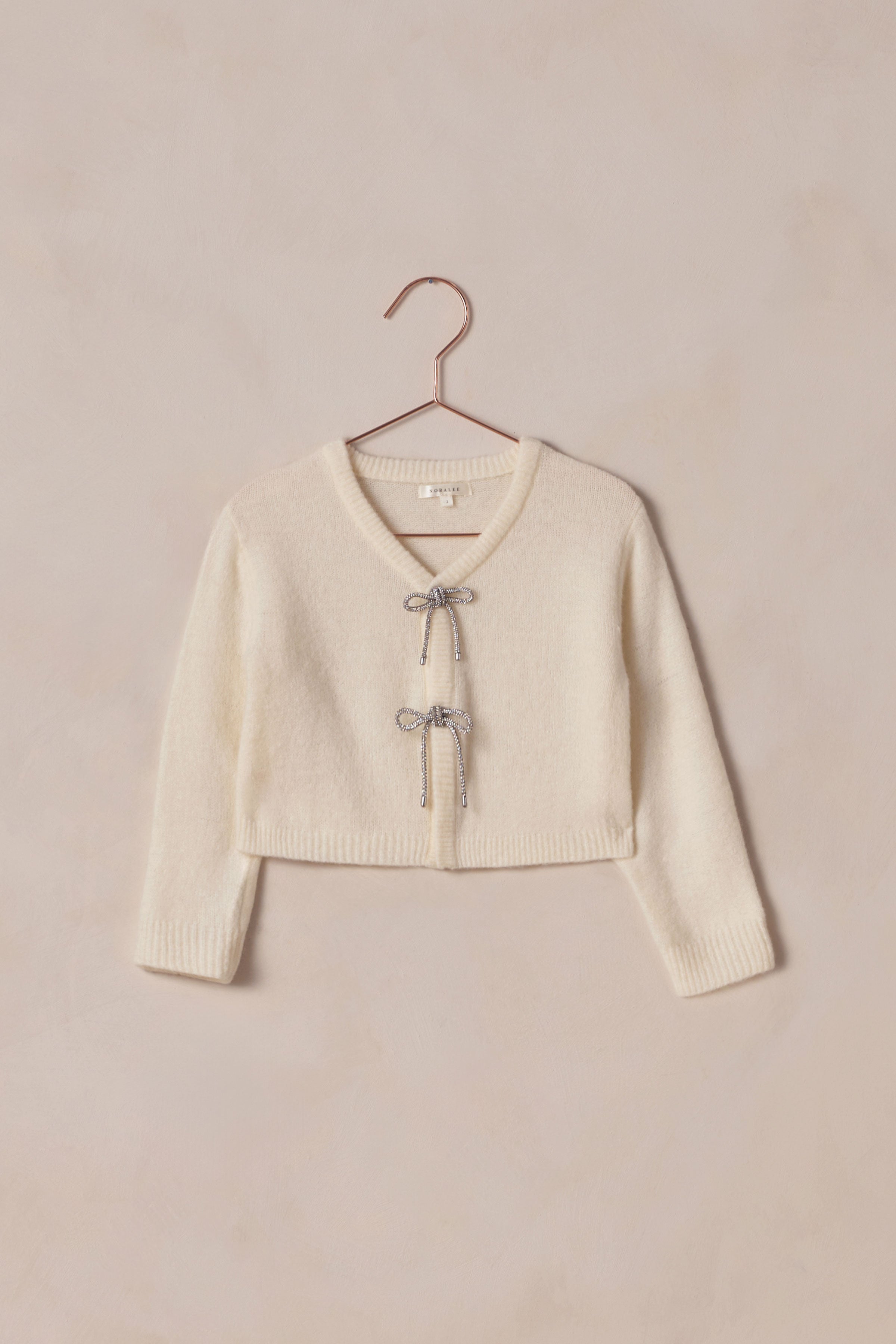 The Bow Cardigan is a sweet layering piece featuring a classic knit body with delicate bow details down the front. Designed for both comfort and charm, it pairs beautifully with holiday dresses or can be worn as a cozy statement piece on its own.