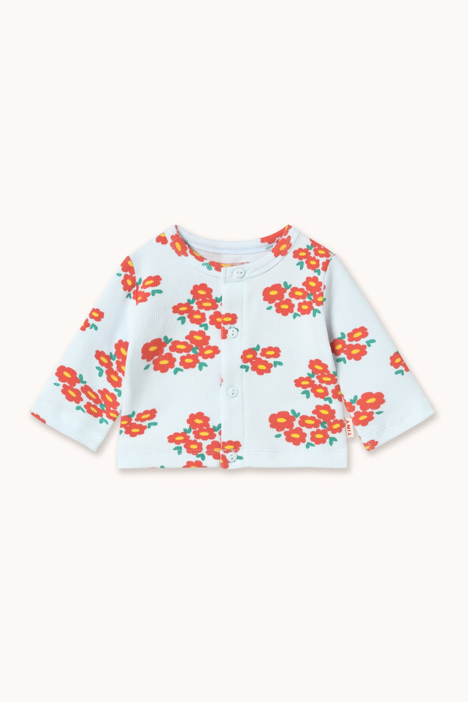 This Blossoms print rib jacket features a simple yet stylish silhouette with a round neckline, front buttons, and straight. Made from a soft cotton blend, move effortlessly with every twist and turn. Pair it with the matching pants for an adorable and cool coordinated look.