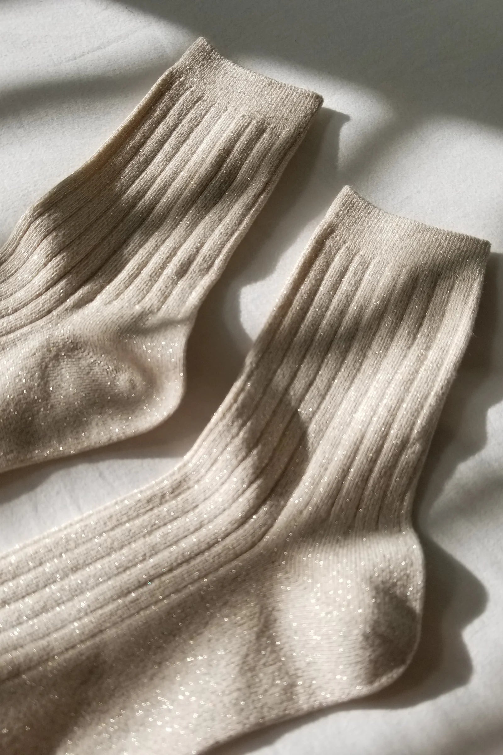 A little sparkle goes a long way with Her Lurex Socks. The glittery version of our OG Her Socks adds a festive element to any outfit. Crafted from a cotton-modal blend, they feature sparkly flecks woven throughout, allowing them to glimmer in the light. Classic ribbed details, quarter-crew length, and shimmery elements make them perfect for days when you need some extra pizazz!