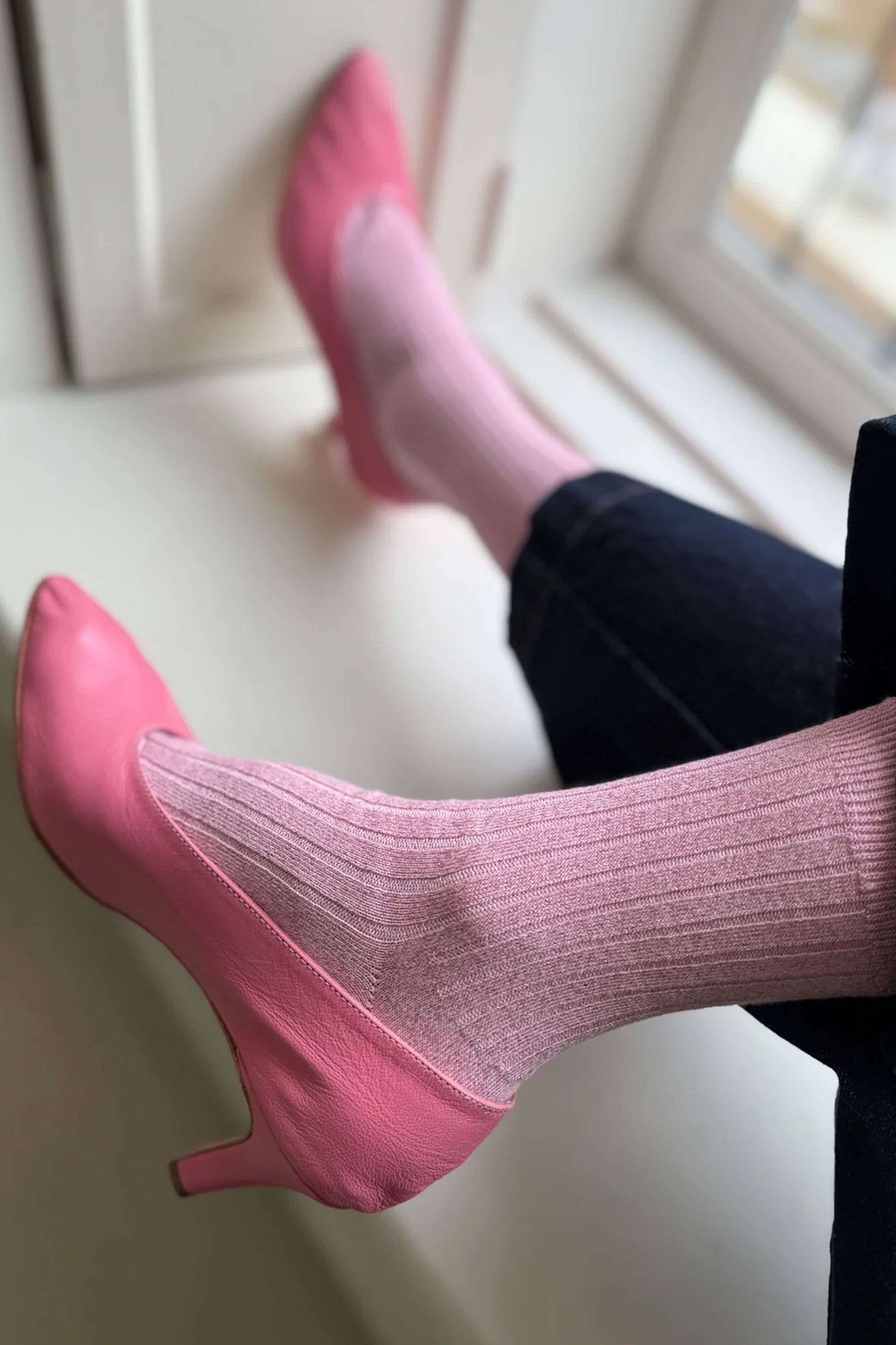 A little sparkle goes a long way with Her Lurex Socks. The glittery version of our OG Her Socks adds a festive element to any outfit. Crafted from a cotton-modal blend, they feature sparkly flecks woven throughout, allowing them to glimmer in the light. Classic ribbed details, quarter-crew length, and shimmery elements make them perfect for days when you need some extra pizazz!