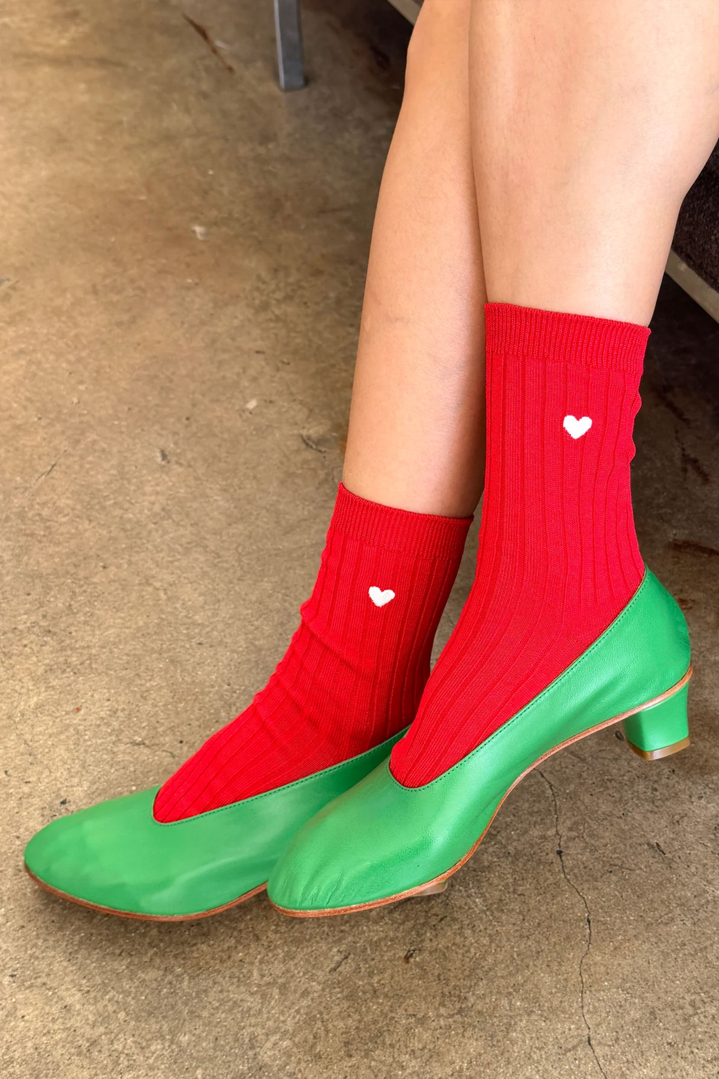 Your favorite soft silky crew sock with a cute little embroidered heart. The perfect height for your sneakers or clogs.