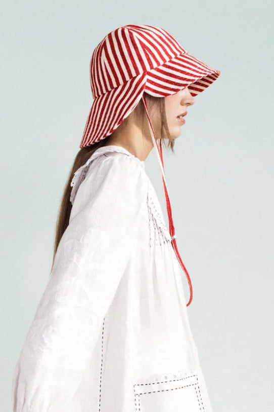 Stripe Tulip Bucket Hat (Red)
