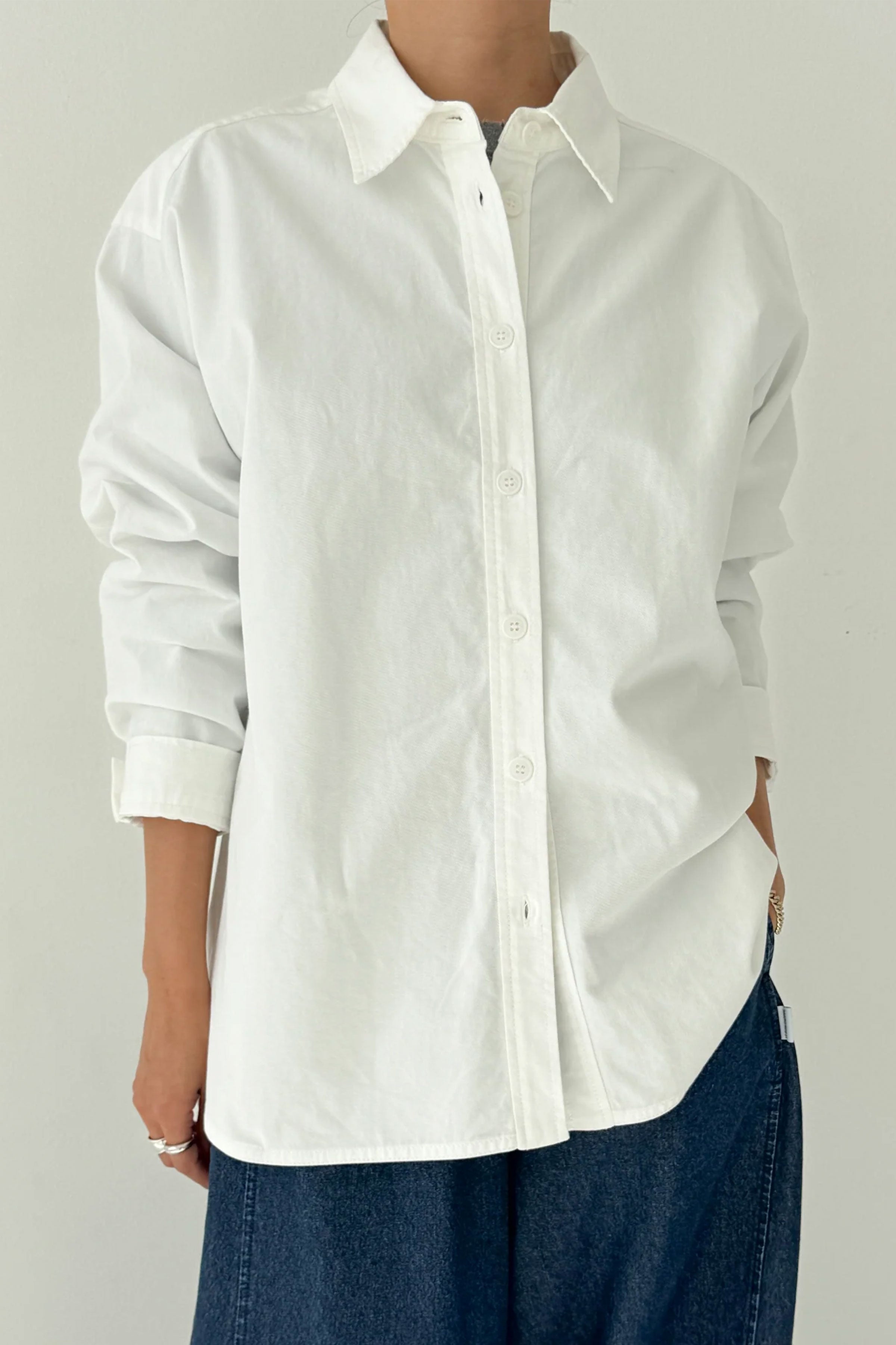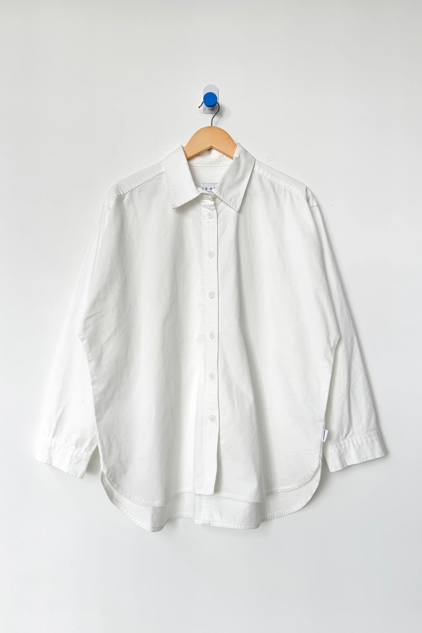 The classic denim shirt, reimagined. It fits like the perfect vintage '90s piece—slightly oversized and relaxed for easy layering, or wear it as a lightweight jacket. Made from 100% heavy cotton denim, it's soft yet durable, ideal for both casual and elevated looks. Featuring functional buttons, contrast stitching, and a classic rounded hem, it's a timeless, versatile wardrobe essential that transcends time.