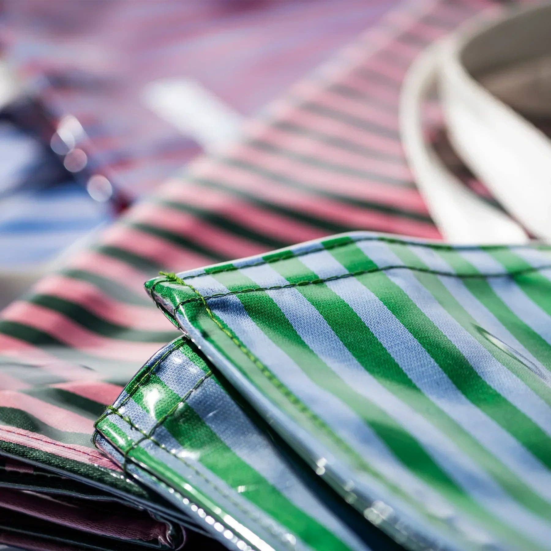Vinyl-Covered Striped Fabric Bags (Various Colors)