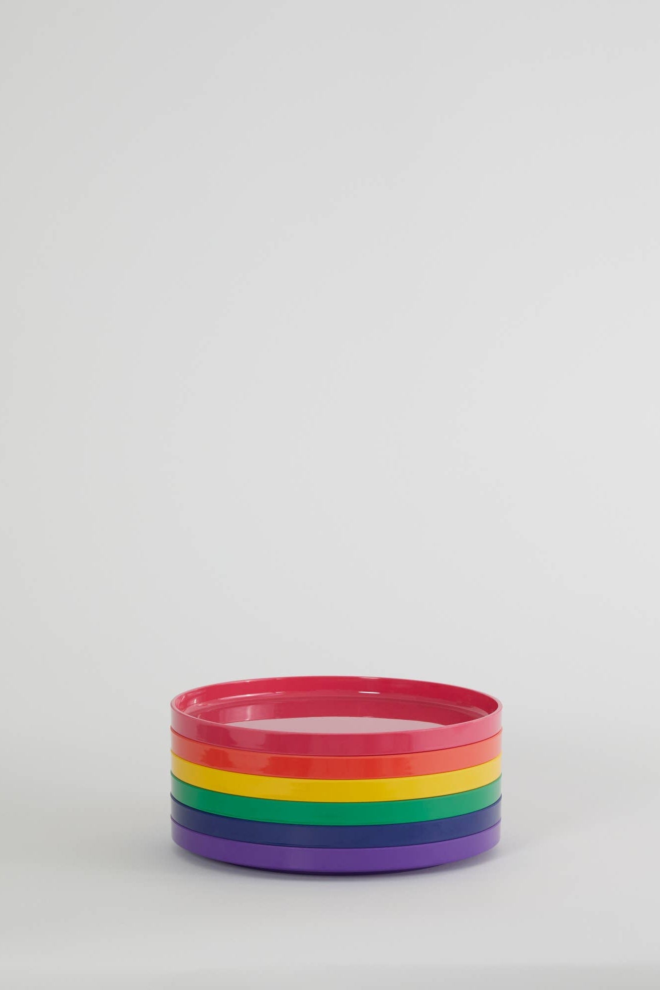 Stackable, colorful, and fun – set of 6 plastic small plates in mutlicolor.