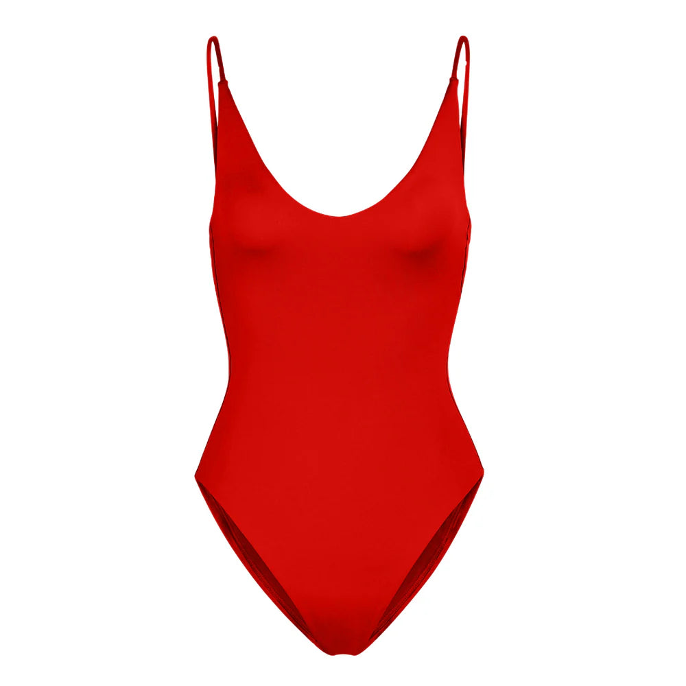Bright red sunday suit swimsuit from Left on Friday - ex Lululemon employees who started their own brand and we LOVE it - we wear our suits year after year as the quality is insane! Please note all swimwear is FINAL SALE - email us for size questions or check the size charts in the photos for references on sizing. Insanely comfortable !