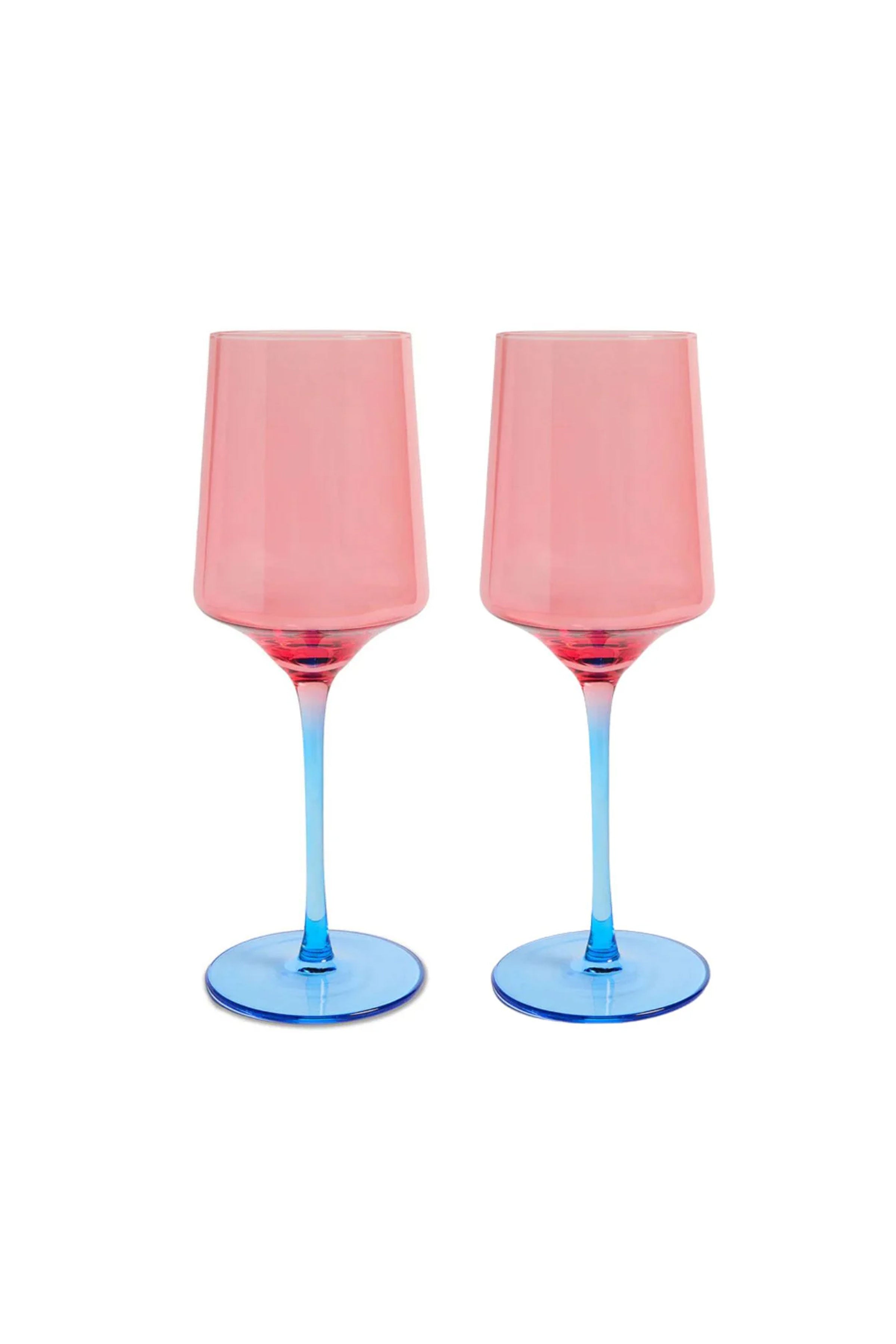 Sip back and relax with Kip & Co Blue Robin Vino Glass set. Designed with bold red and blue, eye-catching color blocking, these beauties bring a pop of playful style to your table.